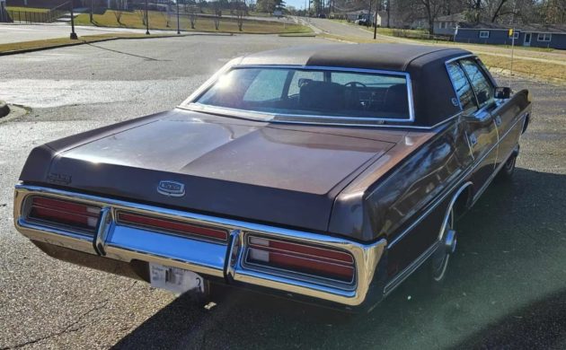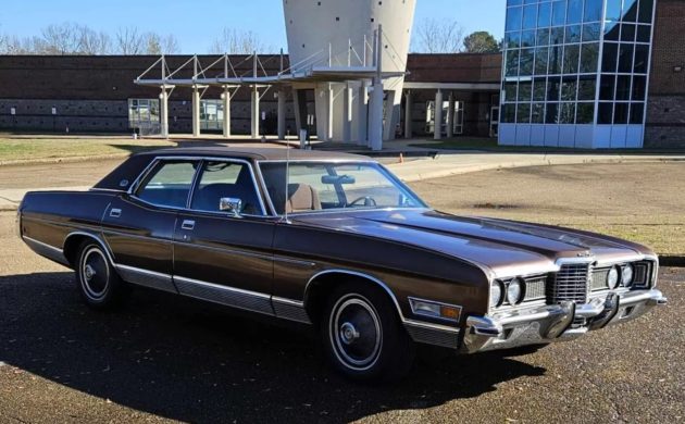 Ford introduced its Second Generation LTD range in 1969, with the Brougham Package joining the party in 1970. The first owner ordered this LTD Brougham in 1972, choosing stunning Ginger Glow Metallic paint to cloak its exterior. They teamed that shade with a Brown vinyl top and subtle Gold “dual accent” pinstripes. The overall effect is classy and would have allowed the car to turn heads in its glory days. The seller is the car’s third owner, purchasing the vehicle from someone who located it in an estate sale. The overall presentation is consistent with a survivor that has been treated respectfully. The paint has some minor defects but, with no significant dings or dents, there are no cosmetic issues requiring immediate attention. The seller mentions the presence of rust, although they don’t elaborate on its location. However, they emphasize that this isn’t a rust bucket, suggesting that any existing problems may be relatively minor. The trim and tinted glass look extremely nice, and the damage-prone deluxe hubcaps are excellent.