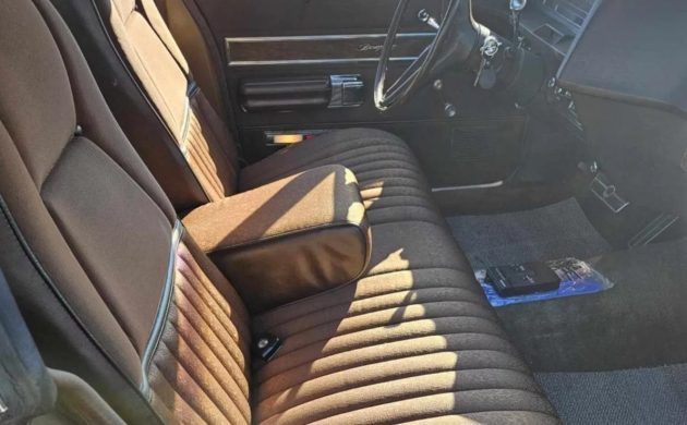 This LTD’s interior could stand as one of the car’s highlights. The first owner trimmed it in vinyl and cloth with a brocade pattern, and the only issues worth noting are slight carpet fading and wear on the outer edge of the driver’s seat. The new owner could prevent further deterioration by fitting a slipcover, although an admittedly brief online search uncovered a reproduction seatcover in the correct materials and color for under $500. If the buyer added $220 for a carpet set, the interior would present nicely. The dash is excellent, the pad is crack-free, and the faux woodgrain hasn’t faded or lifted. The seller rebuilt the air conditioning system so that it blows ice-cold. Other creature comforts include a power trunk release, and an AM radio and tape player.