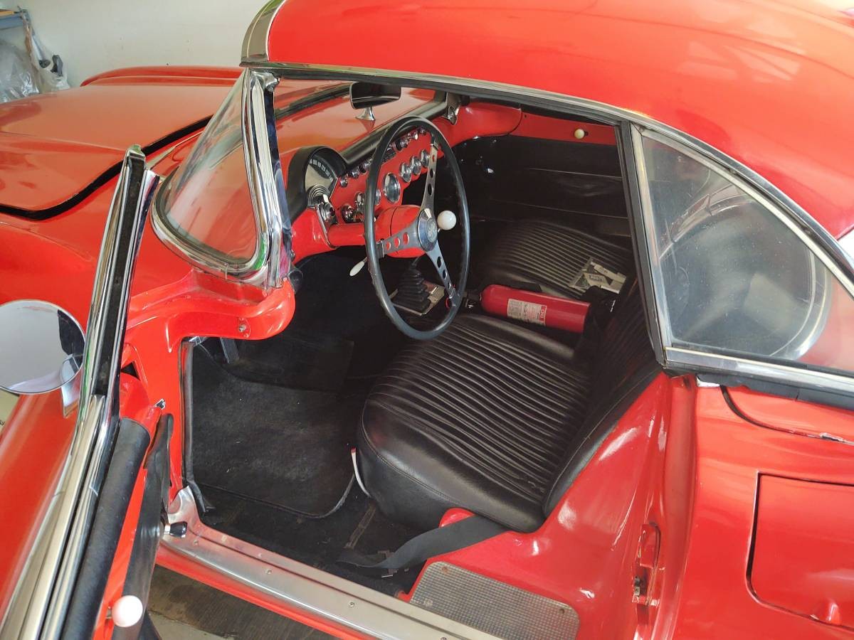 Lifting the hood reveals a mixture of old and new with this beauty. The 283ci fuel-injected V8 that we find in residence should pump out a very respectable 283hp. Bolted to this is a 4-speed Muncie manual transmission, which is a later addition. With its original 3-speed in place, this classic would have stormed the ¼ mile in around 15.2 seconds. With the new transmission, the extra ratio means that the car should now better that figure. The owner says that the engine block and cylinder heads are numbers-matching, but the fuel injection system is date-coded for 1958. As he rightly points out, this is not an uncommon occurrence, although the lack of originality will have some impact on the Corvette’s potential value. However, if this ‘Vette is considered purely as a driver quality car, it probably makes little difference. Locating a correct transmission is possible, and I even found a correct and fully refurbished fuel injection system for sale online. At $5,000, this is not a cheap investment. However, if the buyer is intent upon originality, it could be money well spent. I also had no problems locating a date-correct 3-speed manual transmission suitable for rebuild for under $300, so that part of the equation isn’t that bad. Looking beyond that, this fuelie is said to run and drive well, and it’s ready to be enjoyed by its lucky new owner.