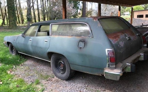 Powering this soil management special is an unpictured 150 net HP, 318 CI V8 engine. The mileage is listed as 22K miles which probably means 122K miles so the little LA engine may be a bit tired. That said, they are very durable motors and this wagon does run, sort of, as the seller states, “I turned over the engine and drove it around the block and around the property some“. The seller also mentions that the brakes are “hard” so there’s a subject that will need attention. A Torqueflite three-speed automatic transmission and 3.23 gears get the engine’s motivation to the recently powder coated wheels.