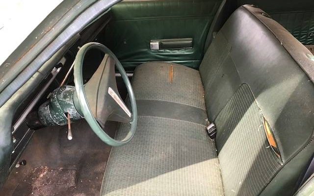 The interior has that Mopar taxicab vibe that low-level models had back in the ’60s and ’70s. Assuming that this wagon is a Satellite Custom at heart, one would expect a rather spartan environment. The vinyl/fabric seat cover and the dash pad are split and the green door panels look partially dilapidated. The floor covering is a rubber mat and the instrument panel appears to be of the radio-delete variety. It actually has a bit of the original ’68 Road Runner feel about it. It would probably be a good idea to check what, if anything, is going on under that mat.