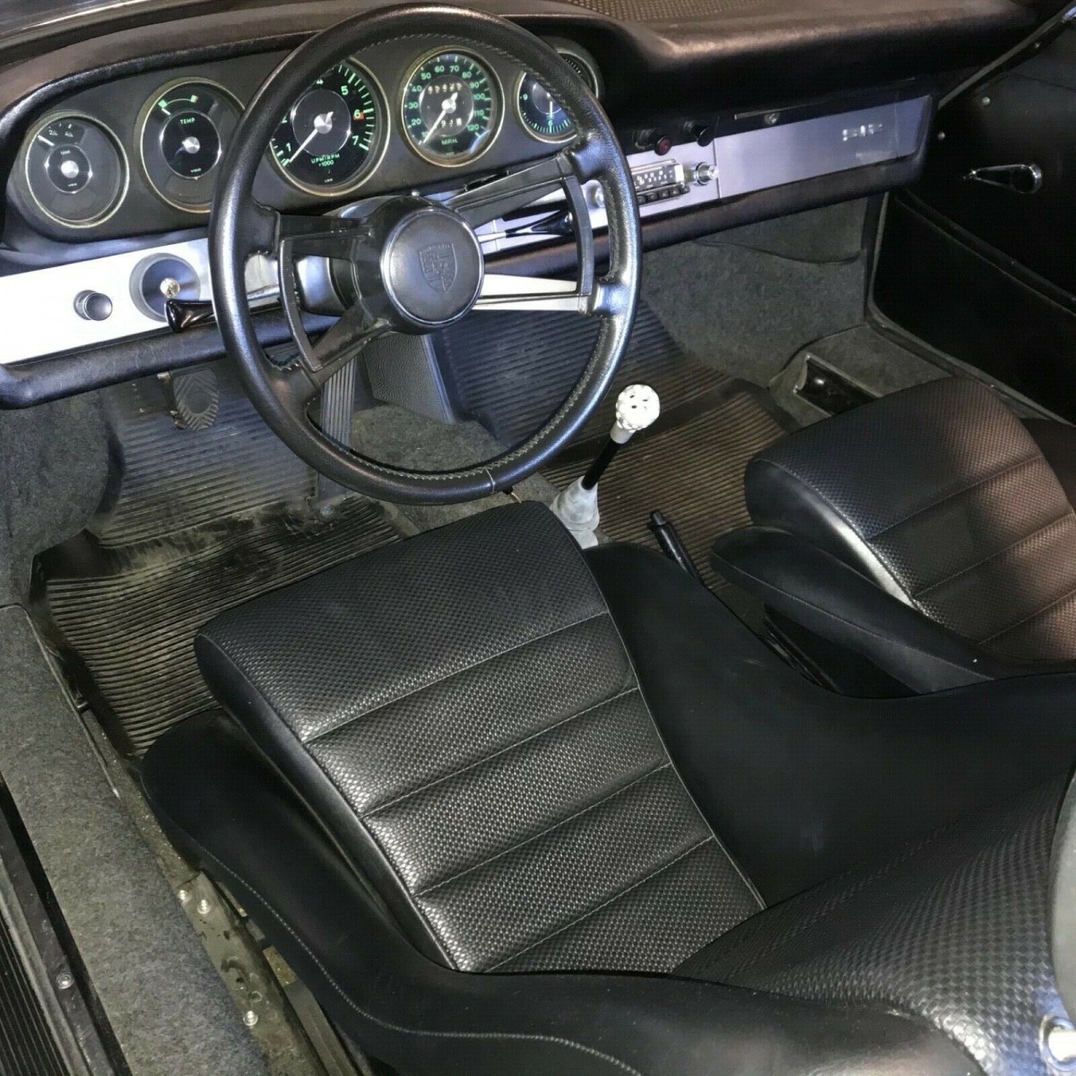 The interior features a set of period-correct sport seats, which are a huge upgrade over the flat and zero-bolstered standard buckets. Carpets are original, with the seller noting the wool felt material is holding up well despite its many years of giving weary feet a place to rest. Even the original rubber floormats are still with the car, which tells you a bit about the owner that put this 912 into long-term storage – they certainly took some care when locking it away, as OEM floormats are one of the first items to get tossed from a car with careless owners. The door panels and dash are said to be in good shape, with the latter showing some signs of vinyl shrinkage. Obviously, this car benefits from its many years of being stored indoors.