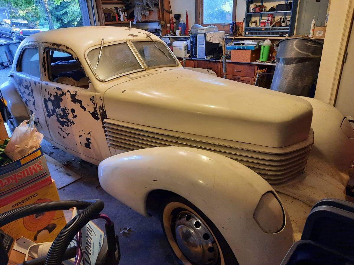 The 1936-37 Cords were advanced for their time. The 810/812 were the first domestic, mass-produced automobiles offered with front-wheel drive. Their styling was unique, and plans were to build as many as 1,000 of these a month, but the capital was never there for such a bold undertaking and Cord folded after two years. This 1936 810 is a Westchester which equates to a 4-door luxury sedan. It’s been in the same family for about 45 years but was last driven around 2007. Some older restoration work was done, but much of it may need redoing due to the passage of time. Located in Westerville, Ohio, this unique piece of automotive history is available here on craigslist for $10,000. Thanks for the cool garage find, T.J.!