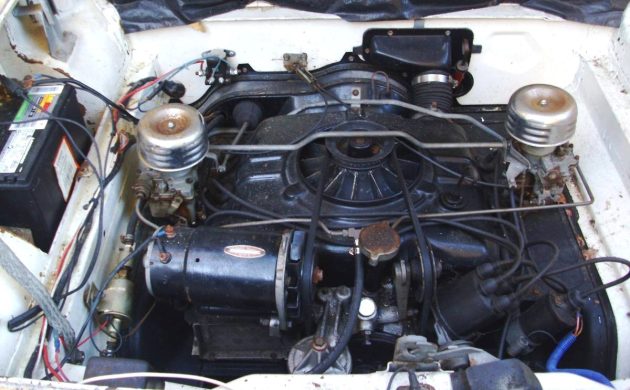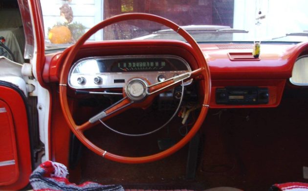 We don’t know the history of this Corvair (such as where it originated, how many owners it’s had, and so forth). The mileage is unknown because the odometer is broken. It does run, drive, and stop, though no adjectives are used to say how well. It does have a 2-speed Powerglide automatic transmission adapted by Chevy to work with the Corvair’s air-cooled source of power.