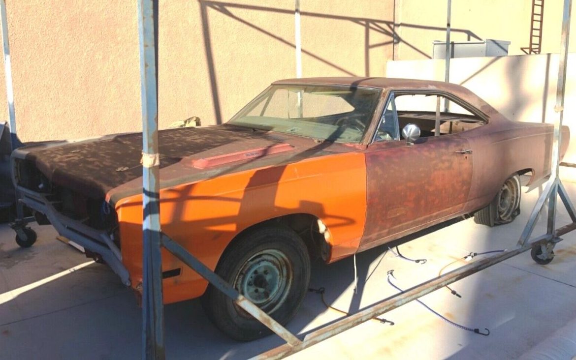 Three pedals and a four-speed bump-out support the fender tag and seller’s four-speed claim. The budget-minded Road Runner appealed to those who wanted a new car that left the factory with street-ready mechanical bits and (if so desired) little else. Most high-rollers looking for a fast ride left the dealer in the upscale GTX. Not every ’69 Road Runner needs the full journey back to factory perfection. Picture this ride with a shiny T5 Bronze in base / clear and a 21st-century Hemi five-speed powertrain, air conditioning, and a killer stereo. How would you re-create this long-forgotten Road Runner?