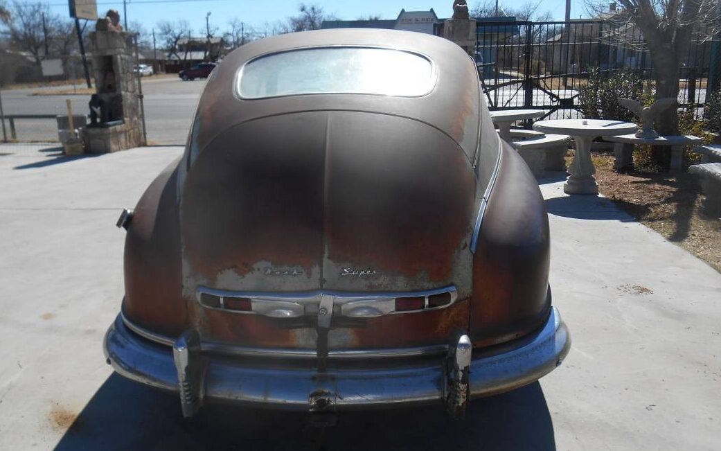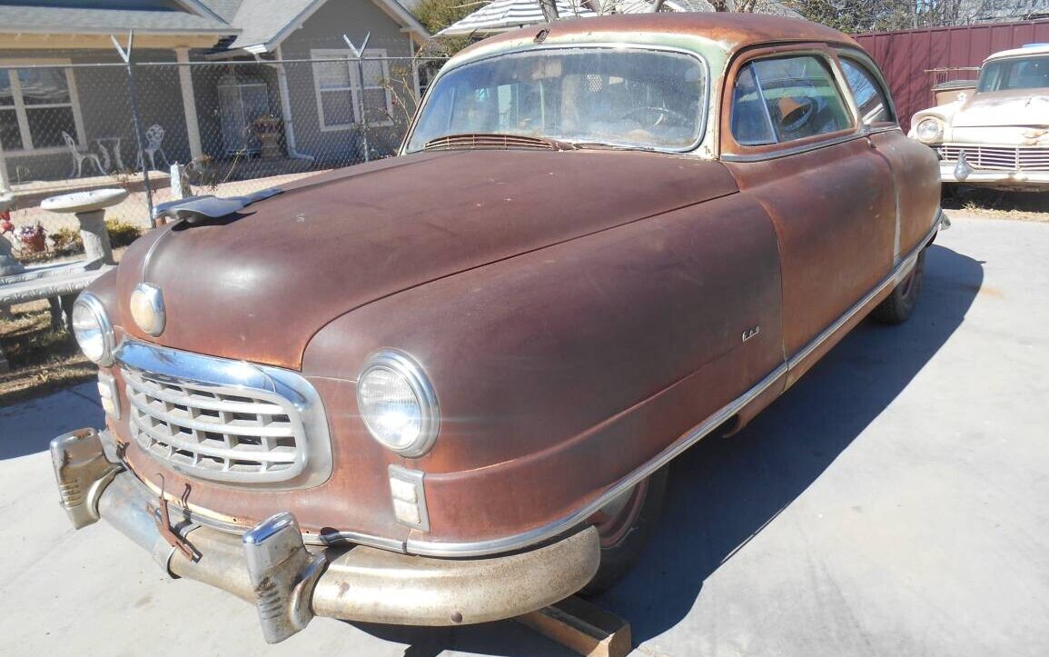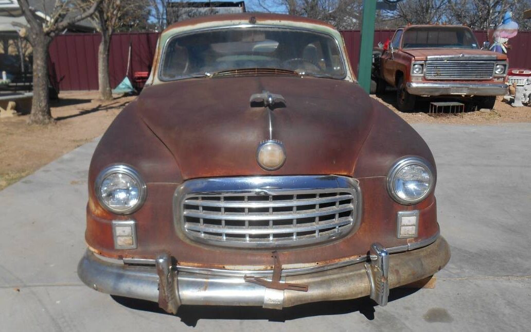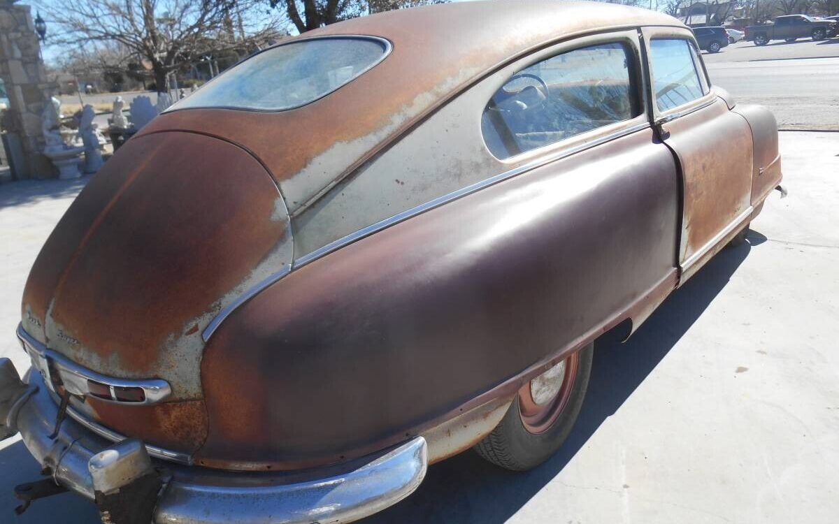 So, what’s up with this really rounded design known as the “Airflyte”? It was all about improved aerodynamics and a lower drag coefficient, but the exclamation of the body’s radical appearance had a marketing component to it too. The Nash Airflyte wasn’t about to get confused with other marques and its uniqueness helped them to differentiate their cars apart from the competition in a similar way that number one Ford’s new-for-’49 design immensely benefited them. Anyway, this Nash has some serious Texas sunburn going on but the body still looks sound as there is no observable rot-through. And other than some missing trim, the exterior shows as complete. I’d say that there is a definite restoration possibility here.