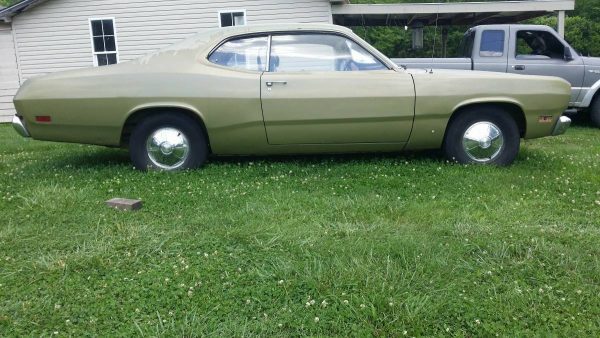 Very first car I ever owned way back when, looked very much like the one featured above except it had numerous dents dings and scratches none of which affected being able to drive the car. Mine was also green, but it was a dark green with black vinyl interior. It also had the wonderful bulletproof slant six, but it was the smaller 198CID rather than the 225. What I liked most of all was that it had the factory 3-speed on the floor, even with the bench seat. I believe that the floor shift was the only option as it had no p/s, no p/b (drums all around), no a/c and I even had to put in my own radio. This bare bones 1970 Plymouth Valiant Duster was 5 years old when I acquired it and I ran it for another 5 years without any major problems until the underbody rust got to it especially behind the rear wheels. It served me well, I just had to keep gas and oil in it and do routine maintenance. The Al Bundy special shown above is awfully tempting but it would have to be a 3-speed manual for old time’s sake. I hope whoever buys it will drive it as is and run it into the ground the same way I happily did with mine!
