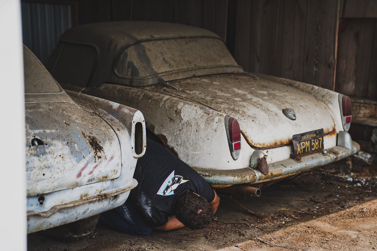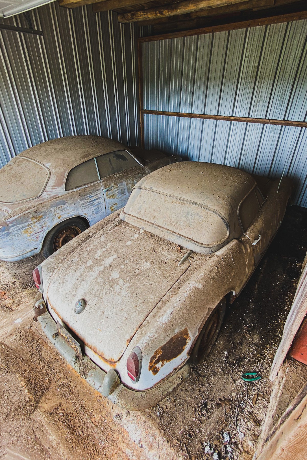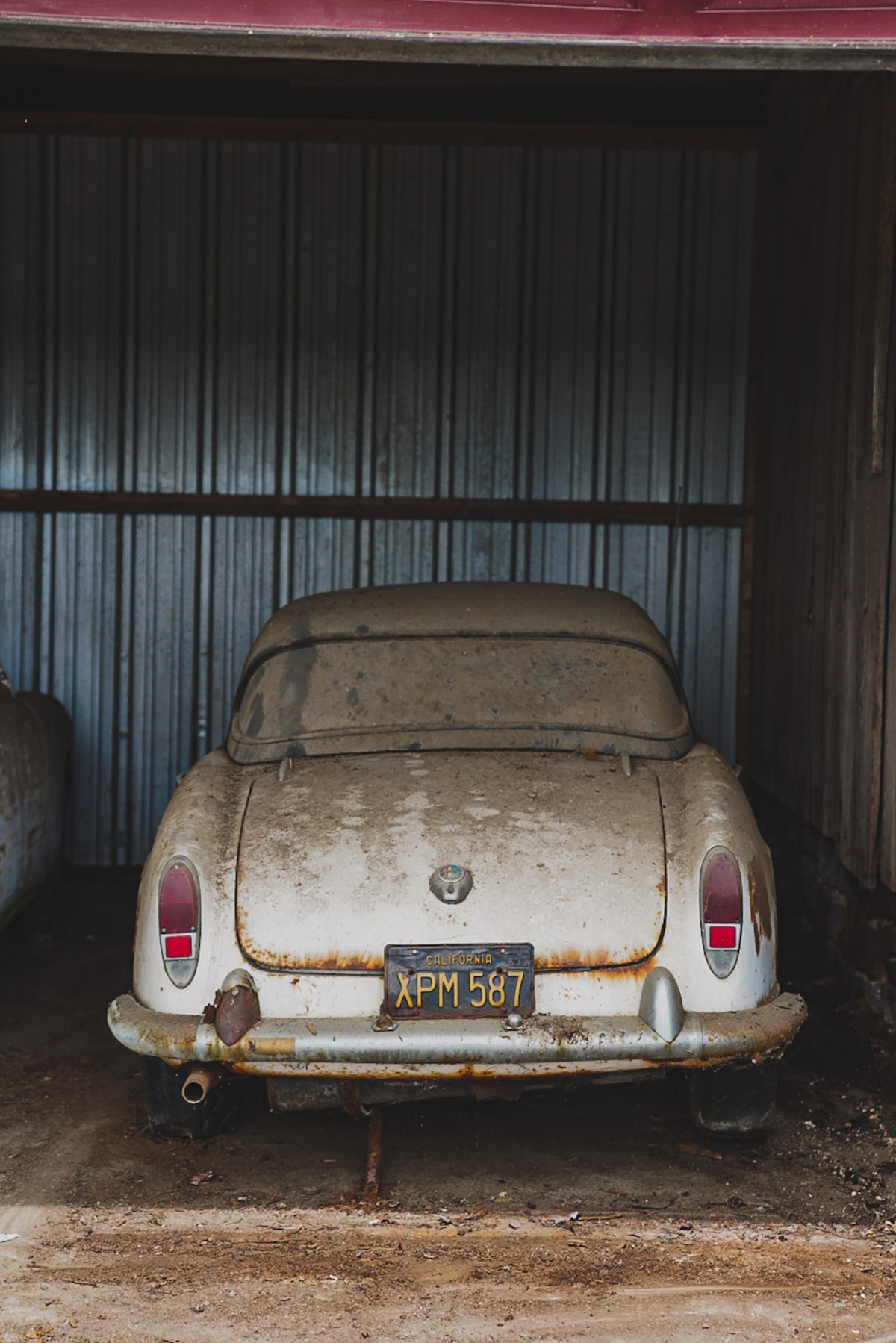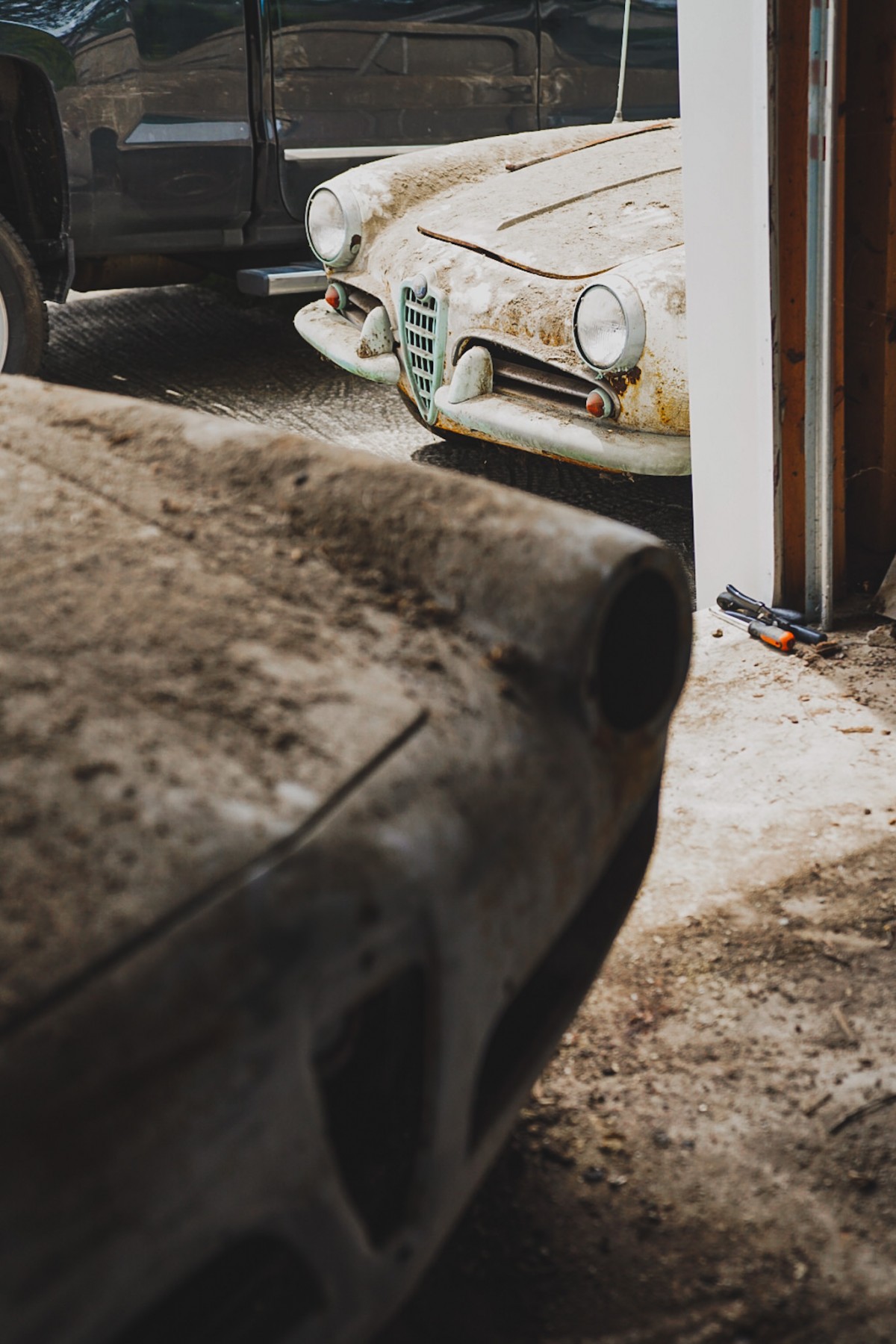 “In the second “barn”, more like a pole building were the two more desirable cars – a 59 Giulietta Sprint and 59 Giulietta Spider. Both were California cars that ran when parked; 40 years ago!”