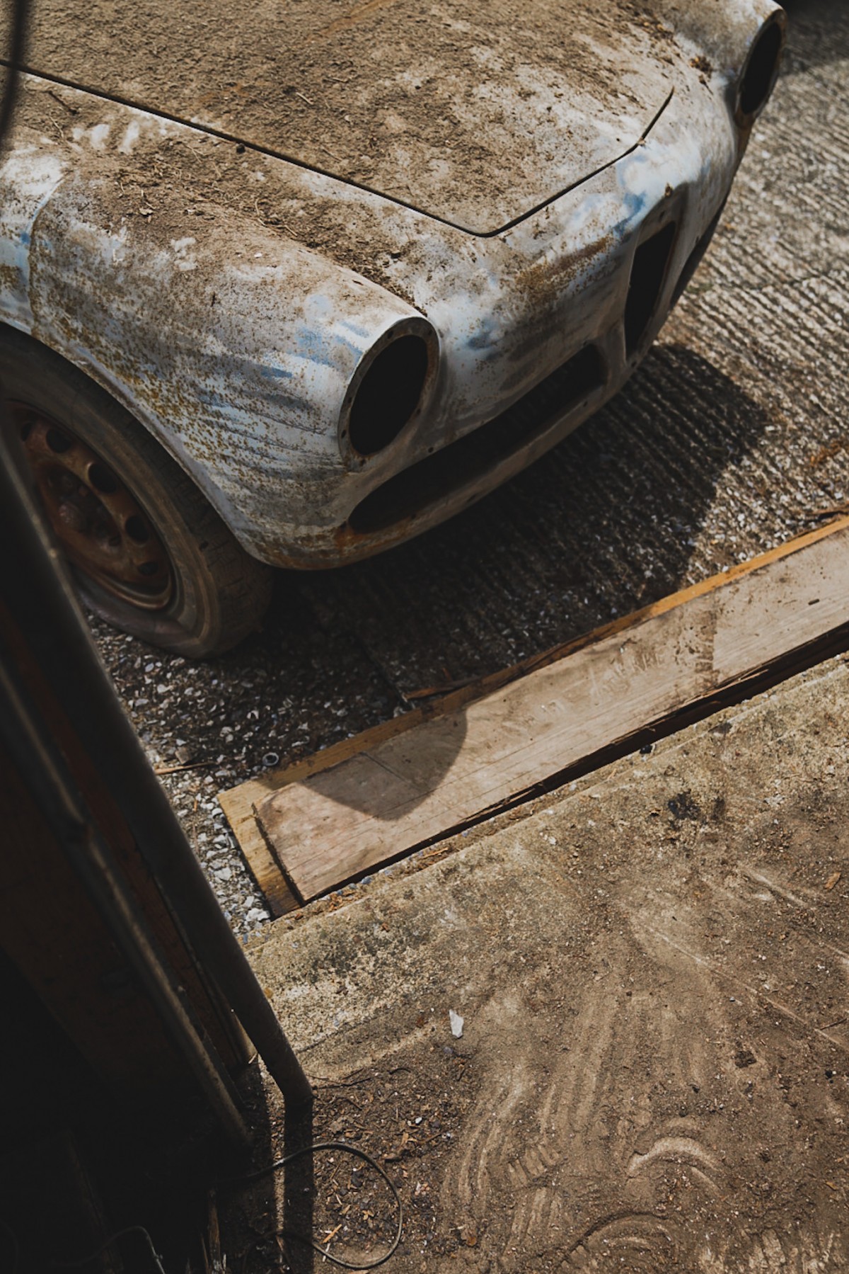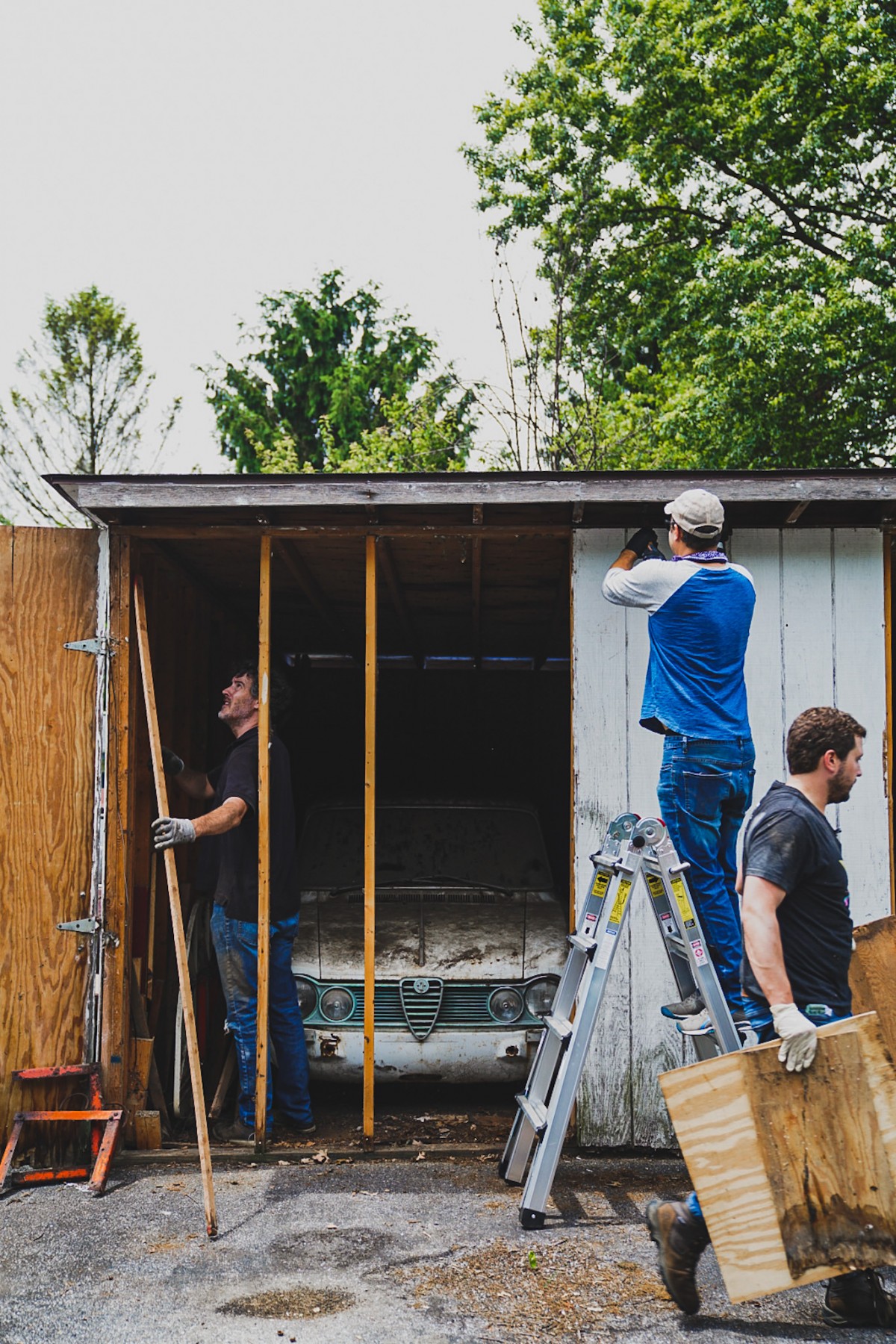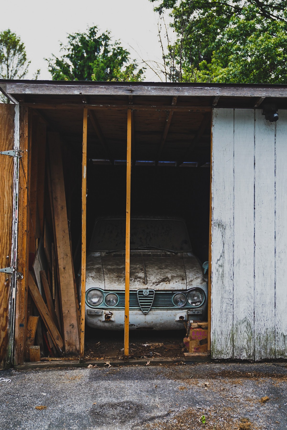 “The family member which he inherited the cars from quite literally entombed three of the five Alfas by building a barn around the cars then sealing them inside with 2×4’s and plywood/siding where there would normally be openings for the car to come in and out. The three entombed cars were a 1967 Giulia, 1969 Berlina, and 1976 Alfetta.”