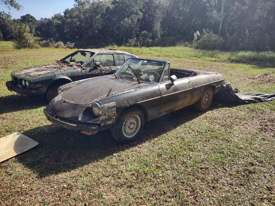 Many of us have a problem with acquiring too many vehicles (or is that just me?) That being said, even when the numbers get a bit on the silly side, I usually cut vehicles loose when I lose all interest in them. Whether I get a decent price or a pittance isn’t my first concern as much as it is freeing up space for a more deserving vehicle. In the case of this seller who happens to have several vintage Alfa Romeos for sale, he just shoved two of them to the edge of his property with predictable results. First up is a pair of very rough Alfas here on Facebook Marketplace, including a 1976 GTV for $1,500 and a 1978 Spider for $2,000; there’s also perhaps the most desirable car of the bunch, a 1962 Alfa Romeo Giulietta Spider, listed here on Facebook Marketplace for $15,000.