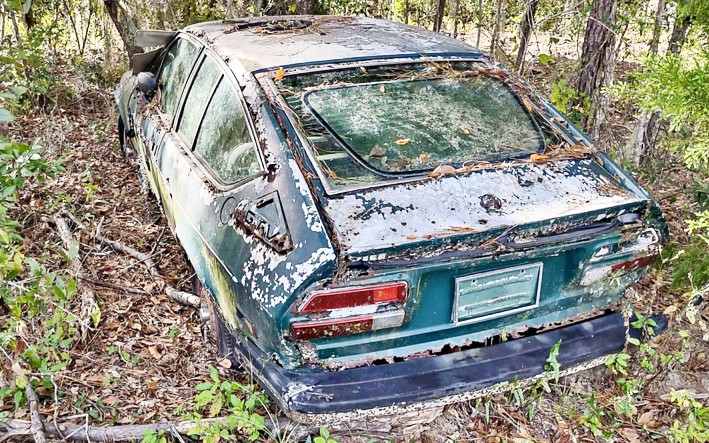I really have to wonder why someone would push a still running Alfa into the woods and not touch it again.