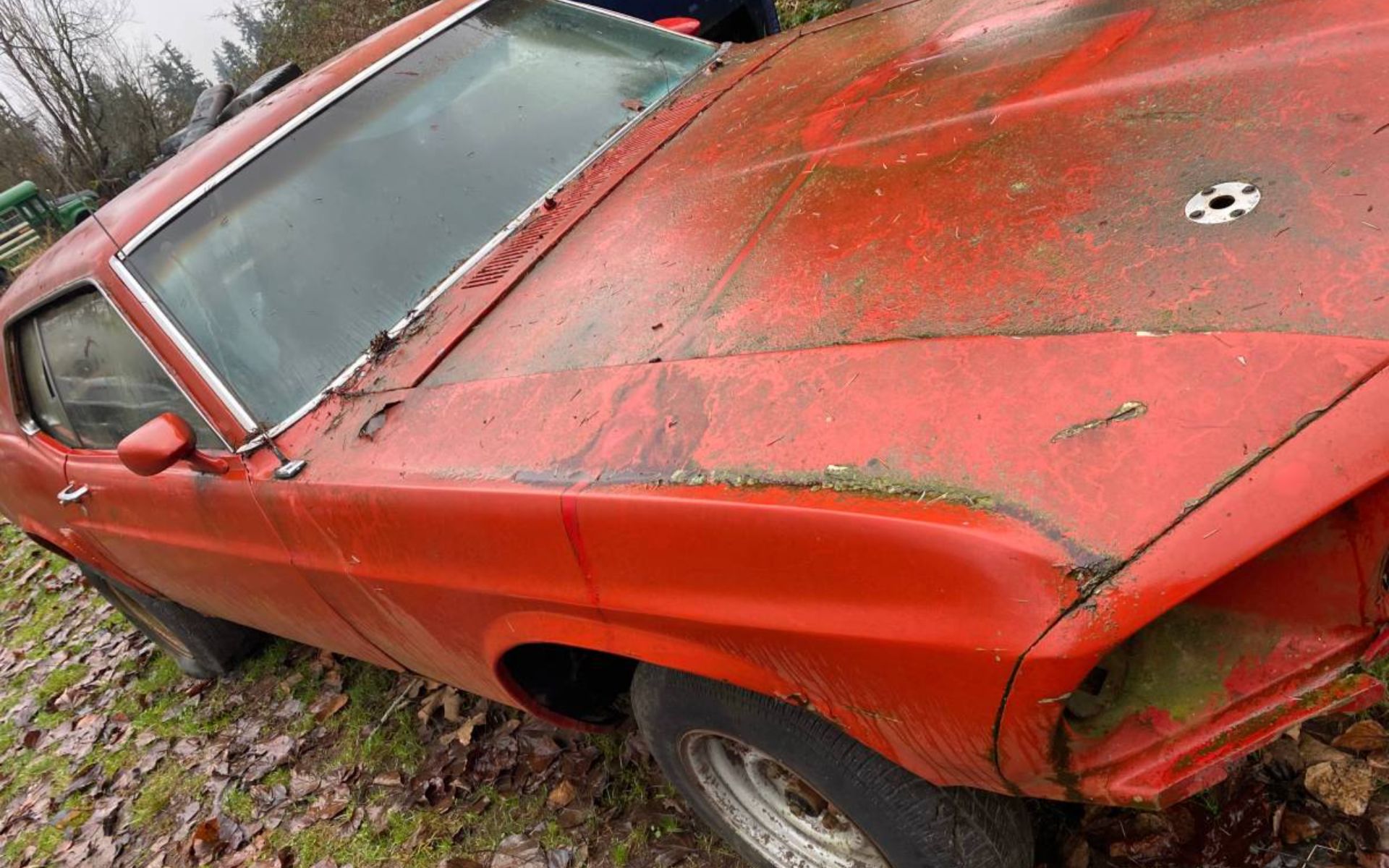 According to the seller, this is a 1969 Mustang coupe described as a “Deluxe model,” which they note is very rare. The car originally left the factory finished in orange with a white interior, a striking color combination that would certainly stand out again if returned to stock. Mileage is listed at 100,000, though given the condition and disassembly, that number should be viewed as an estimate rather than a firm claim.