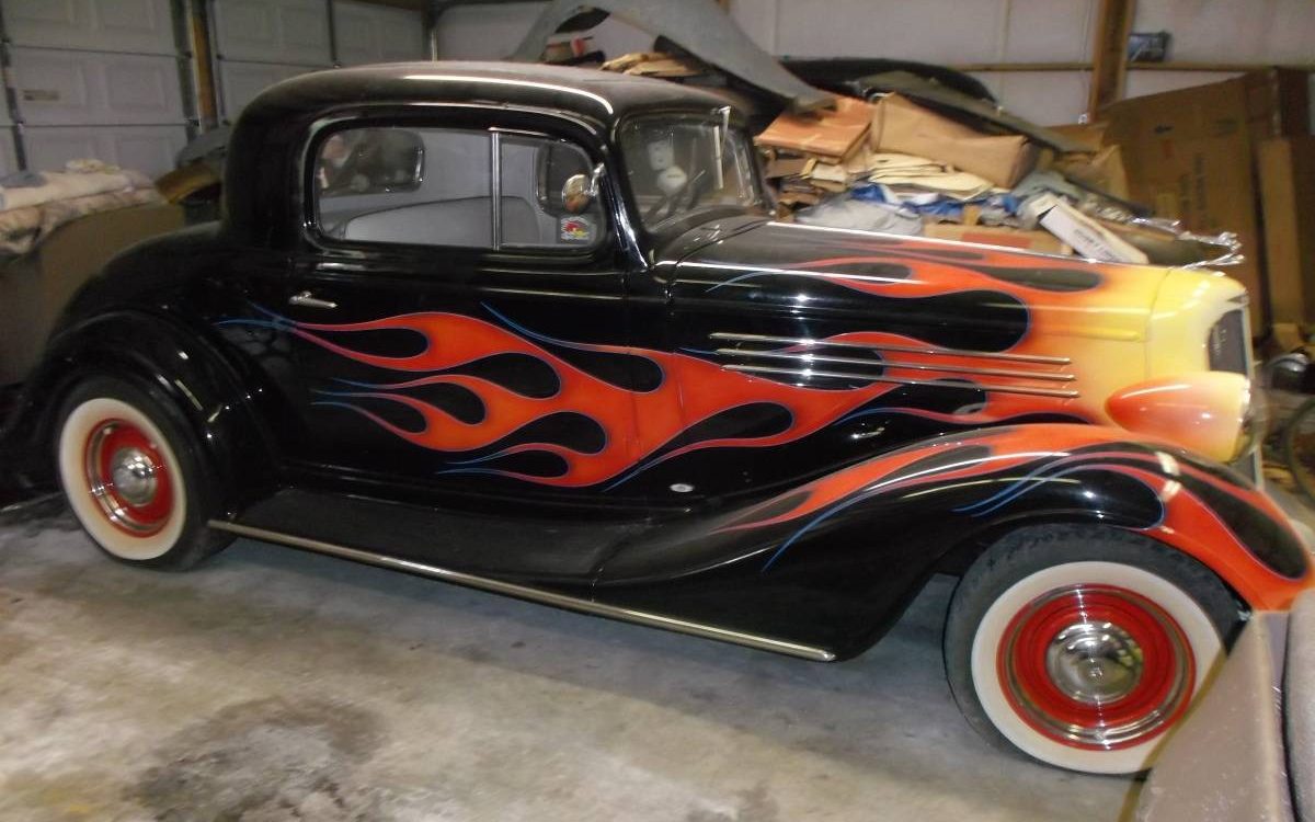 Check out the ’70s-style flame job on this ’30s coupe! I’ll avoid a lengthy image search and lazily defer to our experts to identify the vehicles shown here, since not even those pictured are mentioned or priced in the listing.