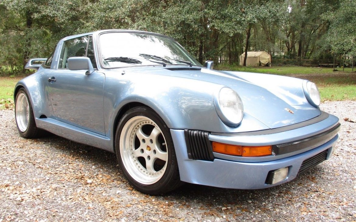Interestingly, this was at one time a Targa-bodied SC that the owner apparently welded a steel roof into in place of the removable panel. The aforementioned widebody kit was also added, along with a modern-style whaletail spoiler. This 911 SC is an intriguing bag of tricks, representing a few different modification styles all in one place. The later-style and staggered Porsche wheels have also been added.