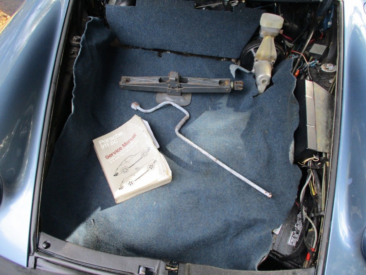 I’ve chosen not to add a picture of the engine bay as we all know what those look like, but the seller does note the 911 will be sold as a non-runner as it’s been left idle for quite some time. The trunk area features the original jack and some tools, along with a workshop manual. The wrinkled carpet captures the sort of tired state of affairs throughout the car, but if the conversion was done to a high level, I see this modified 911 as a great way to enjoy a vintage aircooled without sweating the preservation factor.