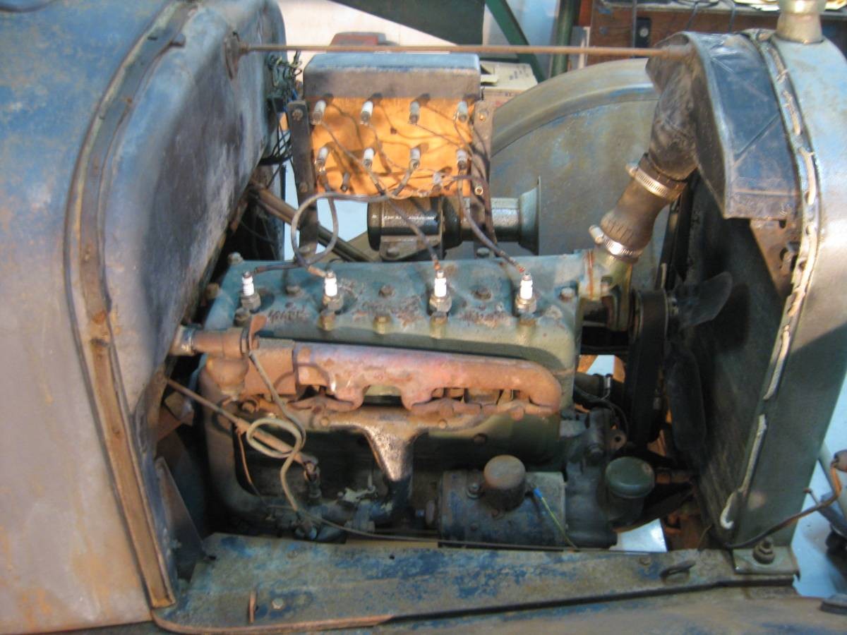 “Tilting back the hood on this Ford reveals the 177ci four-cylinder flathead”