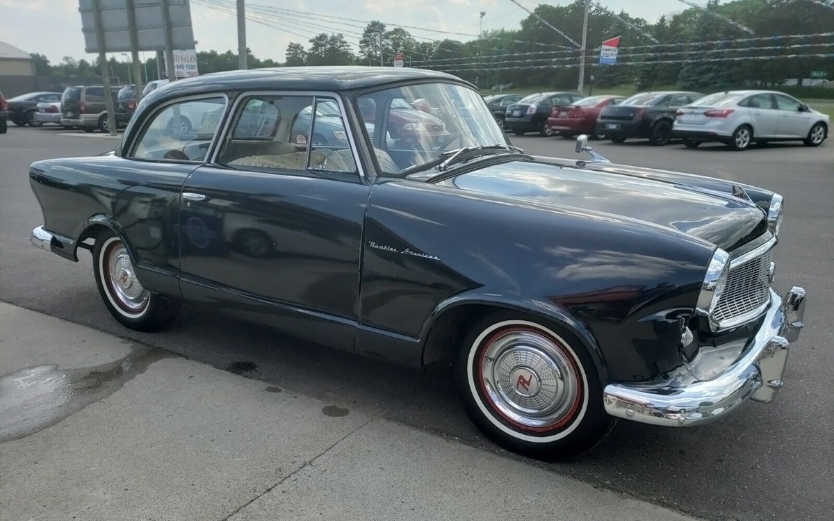 Very little modernizing was involved – it’s basically a 1950 Nash Rambler. The flathead six dates to the ’41 Nash 600. Neat little car but obsolete even by 1960 standards with a 1930s-design engine and 1940s-design chassis (albeit unibody).