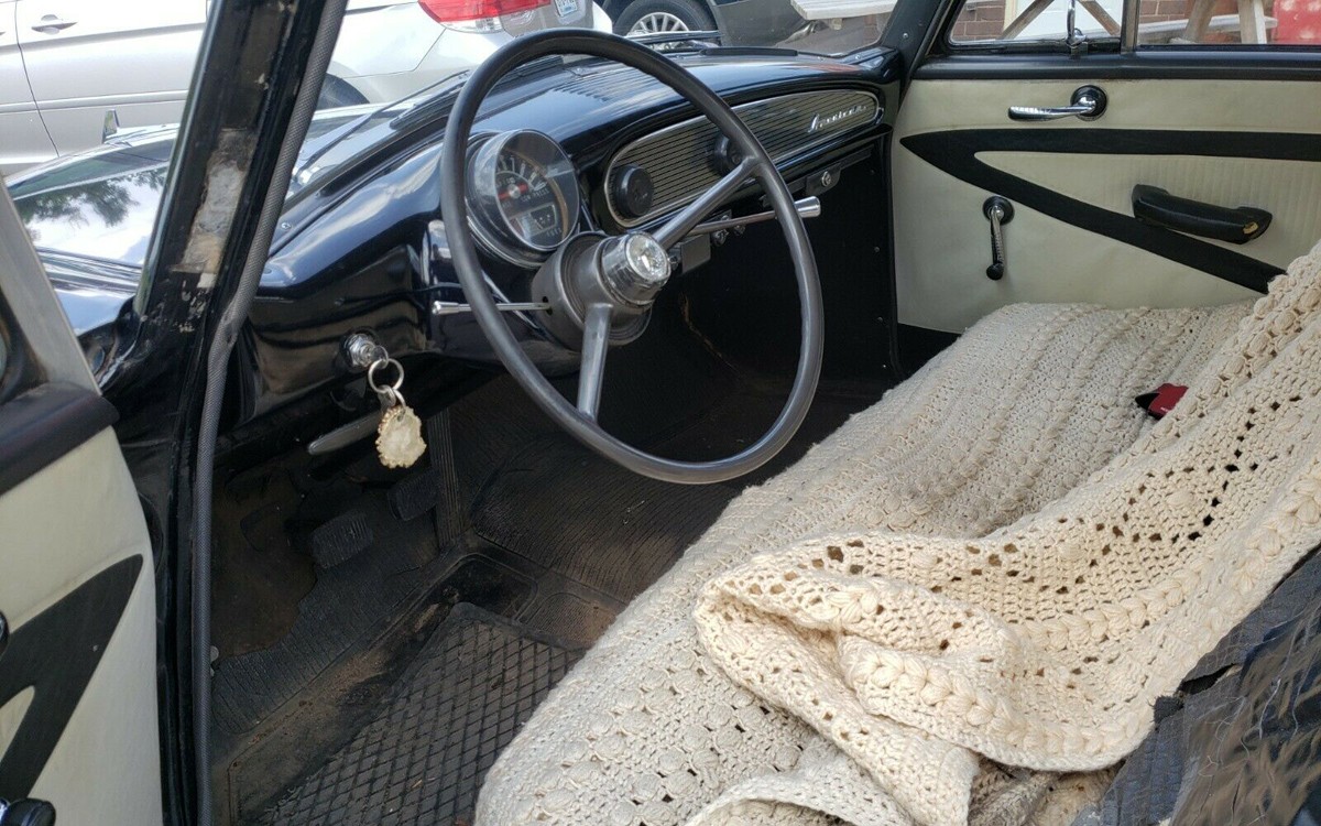 The 61 redesign to me took all the “cute” out of the Rambler. If I recall correctly the roof on the restyled car was practically flat and the grille was worthy of a Peterbuilt truck…oversized for a small car. Someone in my neighborhood had a pink coupe. One of my ex-laws restored a black one just like this in his basement. Never noticed the un-suspended pedals but admired the “off the hardware store shelf” nature of all the fixtures, lamps, brackets, knobs. Someone has taken some time to rub out the original finish on this Barn Find, if this is to be believed one should still inspect closely for unit body rust in the cowl, battery tray, around window ledges and roof gutters.