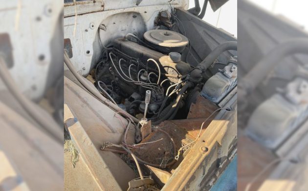 The engine is an inline-six, as you can see, but we don’t know which one it is. Or I don’t. A few (thousand) of you know instantly by looking at it, but Chevy offered at least two and maybe three inline-six engines in 1964. This brochure lists both the 230 and 292-cu.in. OHV inline-six engines as having been available in this truck. I believe this is the 230. It would have had 140 gross horsepower and 220 lb-ft of torque, and this one is backed by the three-speed manual with column shifter sending power to the rear wheels. I’m assuming this truck isn’t currently in running condition, or they would have mentioned that. I’d restore this one back to bone stock condition, right down to white with a fawn interior, but I’m not sure how many others would do that. How would you bring this one back to life again?