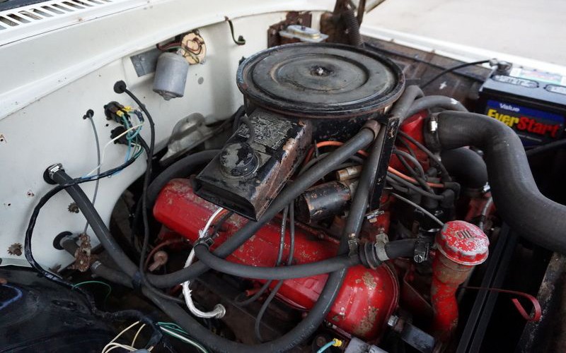 The seller says that this is a two-owner pickup and it’s still wearing its original paint. I wish I could say that same thing. Two-tone paint would have been available but maybe that would have been pushing the envelope too much. The interior looks great but I would have expected to see carpet in a Deluxe model, even in an International. This truck has a column-shifted automatic which according to the seller was a rare option. A three-speed manual would have been standard with a four-speed manual and automatic as options.