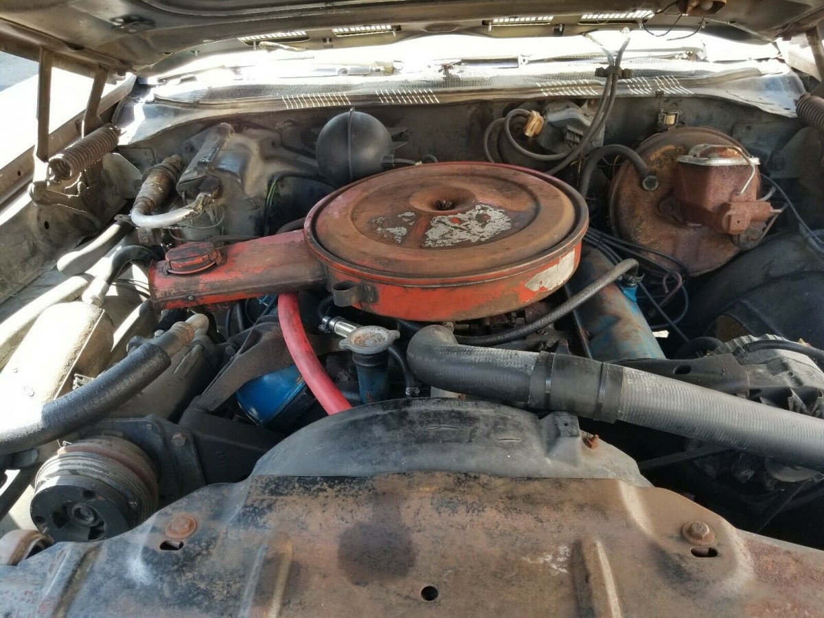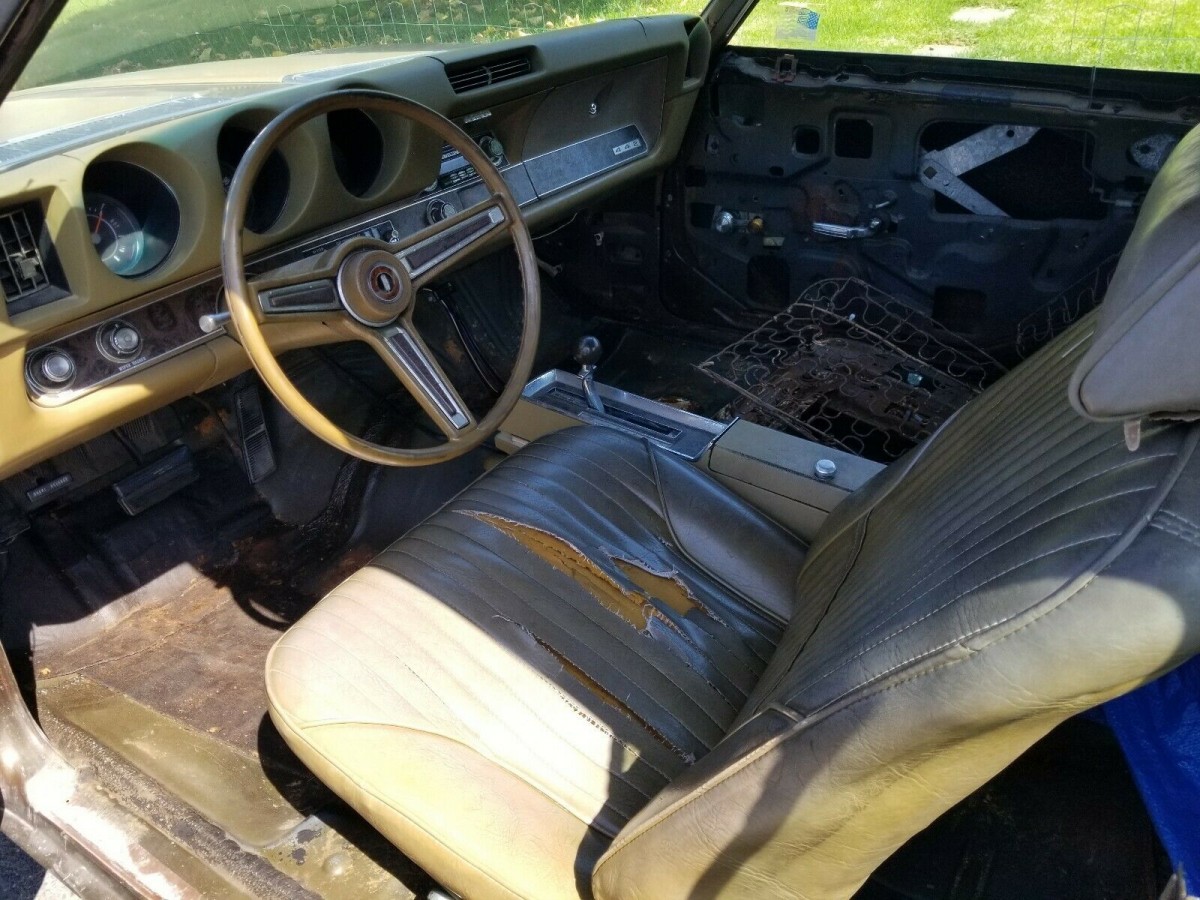 Under the hood, the seller says that they think everything original, including the 400 cubic inch V8. The transmission is a Turbo 400 automatic which has a 12 bolt rear end. According to the listing, the car does run and drive. It does have power steering, which they say works well. The car was once sitting in a backyard and covered with a tarp. There is some noted rust by the seller including the drivers quarter panel.