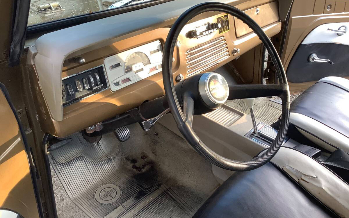 I’ m amazed at this, dig the console with floor shift and transfer case lever. Power steering and brakes, h.e.i. non original but at least reliable. Odd-fire or even- fire v-6 ? I’m guessing odd-fire for that era. I’d have a good mechanic fabricate a heat stove for the air cleaner for those cold wintery days if i’d take it out. This is a keeper