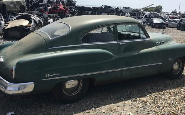 It’s been a banner week at Barn Finds for fans of Buick’s midrange postwar fastback, the Super Jetback Sedanet. First, there was a beautiful no-reserve ’49 model presented as a Barn Finds Auction, and now there’s this solid but stationary 1950 model. Unlike the almost universally admired ’49, the “Bucktooth” Buick has its detractors, but for Buick fans who want the ultimate interpretation of Flint’s waterfall grille, nothing can beat a ’50. Barn Finder T.J. found this Sedanet on his rounds and sent it our way. Located on Marketplace in Lincoln, California, it has a clean California title (and has “been on non-op”) and an asking price of $12,500.