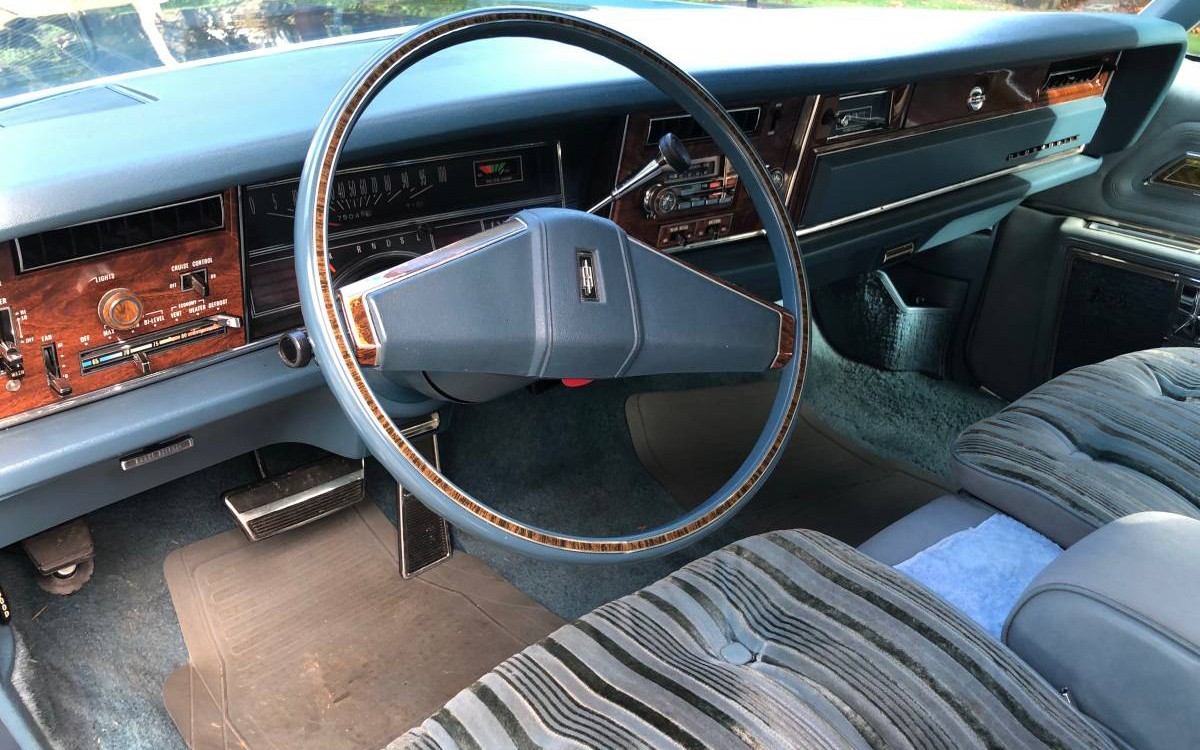 I have a soft spot for big 70’s cruisers. When I was a teenager, my grandmother’s friend had one of these in burgundy. Same interior pattern. I thought it was outrageously ugly, but sooooo comfortable compared to grandma’s Cadillac. I now have a 78 eldorado biaritz with a similar pillow-top leather interior. It is sooooo comfortable! I like the colors and style of this car. I live not far from its location and would be tempted except no more room in my garage