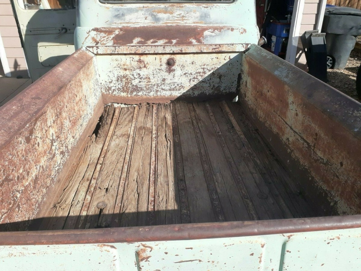 Naturally, the soft parts of the interior have long-perished, but the driver’s floor looks solid. The truck has the optional four-speed manual transmission.