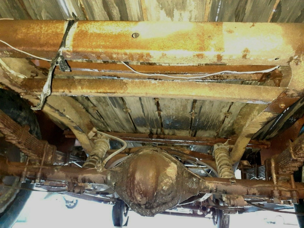 Underneath, it looks like the truck only has surface rust. No, those coil-overs are not stock, although many aftermarket suppliers offered them to boost the load-carrying capacity.