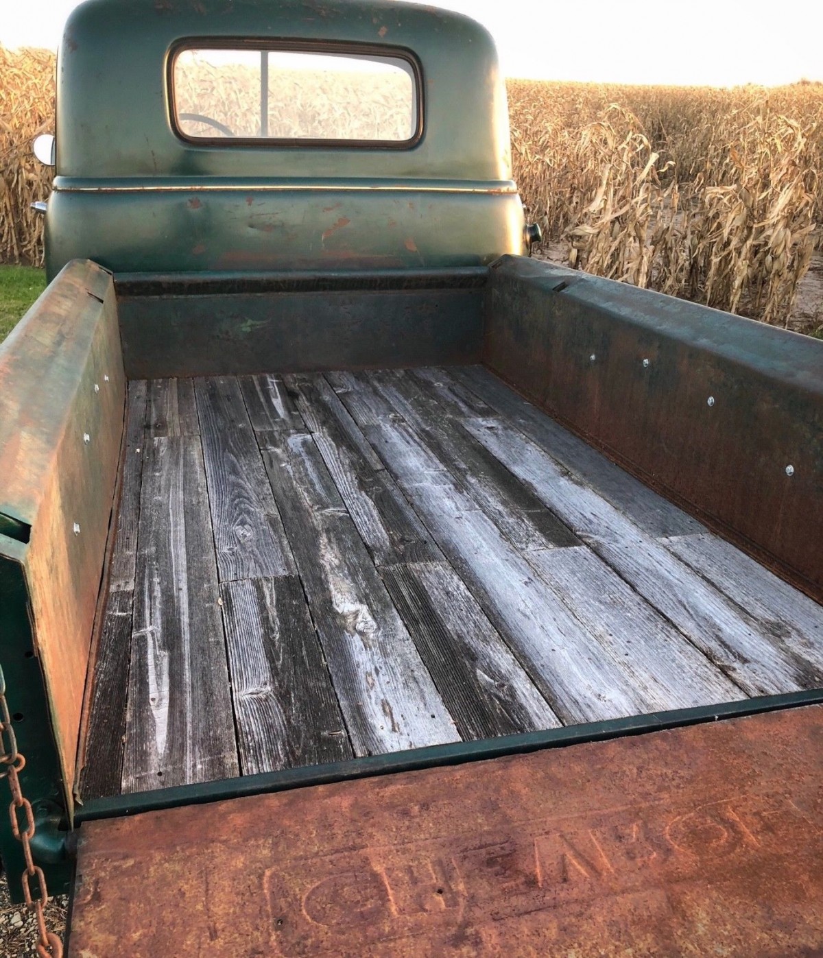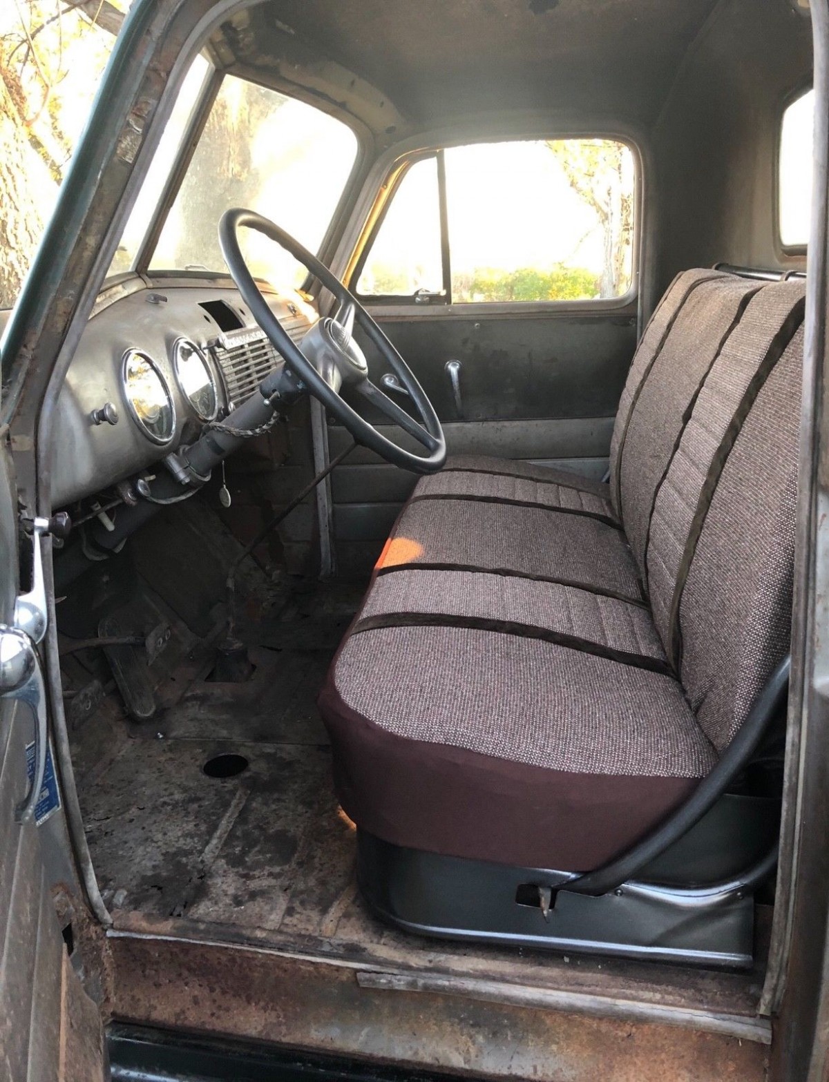 The seller says they have too many projects and therefore this one is up for sale. They tell us that the fenders have minor dents and dings and that while the front and rear glass are ok, the driver’s window is missing and the vent windows are cracked. The outer cowls are fairly solid but there is one small hole in one corner of the cab. The front floors and kick panels have rust holes and there’s also some rust in the lower part of the front fenders.