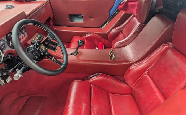 The interior looks like someone took a Fiero and covered the surfaces with cardboard and vinyl. Then again, that’s pretty much how the real ones looked when they left Italy. The red upholstery does help though and the 5-speed shift knob is a welcome sight. It would be fun to take this one around the block to see how it actually drives.
