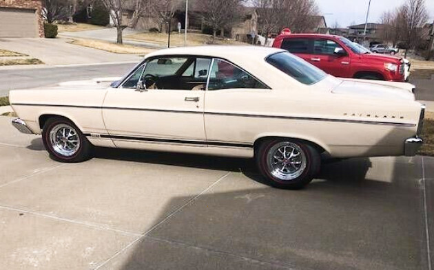 In spite of the spectacular popularity of Chevrolet’s ’66 and ’67 SS396 Chevelle, I was first aware of Ford’s ’66 and ’67 Fairlane GT and still have a thing for them. I’m not sure if it is the “fleet-0f-foot” styling, the stacked headlights, or the fake hood vents, it’s probably a combination of the entire package. And the taillights of the ’67 model, such as those on today’s ’67 GTA find, are my preference over the preceding year’s version. Said to be one of 64 finished in Pebble Beige, this Fairlane is located in Omaha, Nebraska and is available, here on eBay for a current bid of $24,300 with the reserve not yet met.
