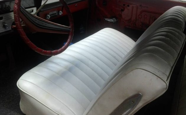 For eight hundred bucks how could you go wrong? No pictures of it underneath but if it’s as solid as the sheet metal appears you have a viable project, even if you have to rebuild the engine. That seat looks new and the top is in good shape too. That back seat photo looks a little wonky, what are we looking at exactly? If it was closer I’d take a look.