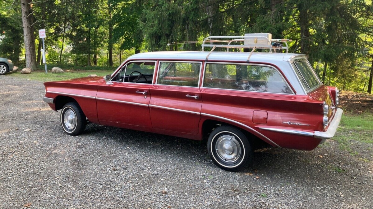 The seller refers to this interesting wagon as a Jetfire, but I believe that moniker was reserved for the 1962-63 coupe version of the car that came with a turbocharged version of the “Rockette” V8 (the seller’s wagon appears to have no such apparatus). It does come with the 3-speed “Roto Hydramatic” transmission that was also new in ‘61. These cars also had a double-wishbone front suspension plus a 4-link live axle in the back, making it a different set-up than the company’s full-size cars. I don’t know if that has anything to do with how high the seller’s wagon seems to sit off the ground (almost like it has 4-wheel drive).