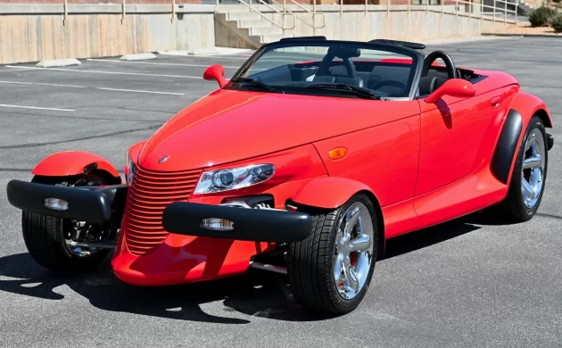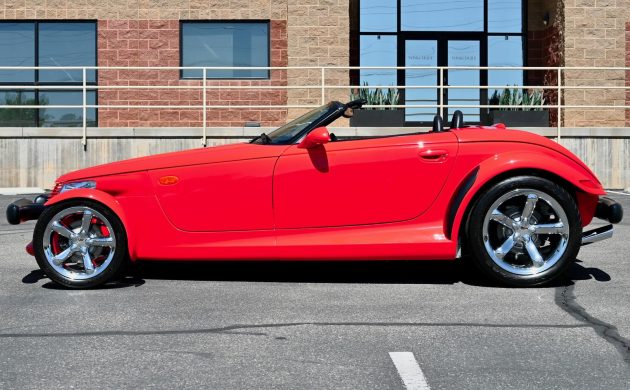 The DaimlerChrysler company offered the Plymouth Prowler (later Chrysler Prowler) for just five calendar years, 1997-2002, with no 1998 model being sold. Their sales tallied to about 11,000, which makes the Prowler relatively rare. For comparison, Tesla currently sells about that many cars in China every week. General Motors sent around 25,000 Corvettes to excited new homes in the 2025 model year. What was special about the Prowler was the bold design and aluminum body panel construction. The model was a shadow-replica of the iconic 1932 Ford hot rods that were once a staple in collectors’ garages, and which still represent the pinnacle of the vintage car hobby to many. The side view is particularly reminiscent of the cars associated with the start of the hot rod craze.