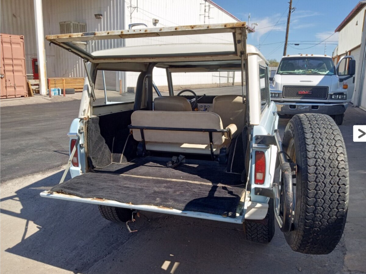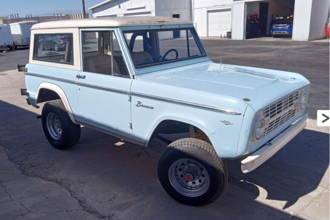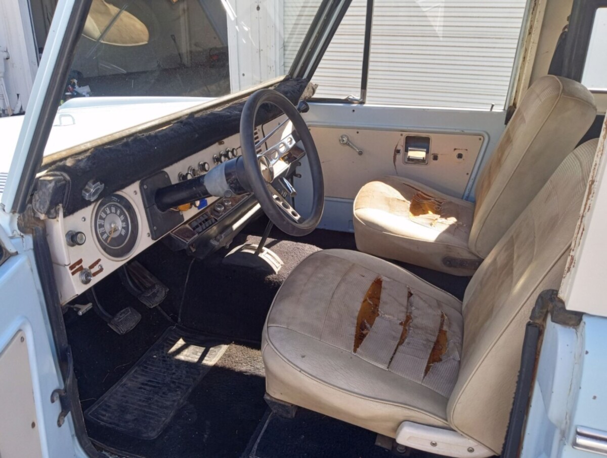 The name Fred Gibson Snr may not be instantly recognizable to some people, but he was a genuine American patriot. A brilliant chemical engineer, the US Government requested that he leave his pregnant wife and young family to travel to England during World War II to unravel the mysteries of magnesium that the British had “acquired” from Germany. He proved successful and, upon returning home, was charged with producing as much of this wonder substance as possible to assist the United States and Britain in their war efforts. Following the end of hostilities, he founded Pacific Engineering & Production Co. of Nevada (PEPCON) in 1955. The company developed and produced oxidizers for solid rockets, including those used in the Space Shuttle program. His contributions, and those of his family, were recognized by the University of Nevada, Las Vegas, when they were inducted into the Business Hall of Fame. He purchased his new Bronco in 1968, using it regularly until passing it to his grandson, James Gibson. James was a successful businessman, also serving as a three-term mayor of Henderson, Nevada. Once again, the Bronco saw regular use until being parked in a garage bay twenty-five years ago. The seller recently acquired the vehicle and was surprised by what they found. Its Sky View Blue and Wimbledon White paint shows some age, but it remains presentable if the buyer elects to pursue the preservation path. The panels sport a few minor bruises, but nothing demands attention or replacement steel. The biggest issue most First Generation Bronco buyers face is rust. However, the photos suggest Mr. Gibson Snr made the wise choice to undercoat this classic early. There is dry surface corrosion on the underside, which is common with vehicles from dry climates, but there is no evidence of penetrating rust. Treating the corrosion and adding a fresh undercoat would be wise, but it looks like the grinder and welder can stay in the cupboard for this project. The trim is intact, and the glass seems free from significant problems.