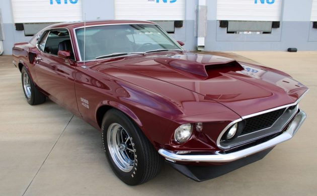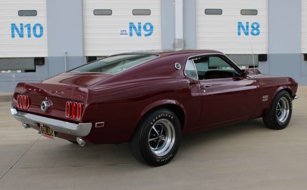 Ford followed a relatively conservative approach with the Mustang Boss 429’s appearance. It featured a slightly smaller front spoiler than the Boss 302, and an enormous hood scoop to feed plenty of cold air into the brute occupying the engine bay. There were no bold stripes, just a couple of decals on the front fenders for identification. This car’s first owner ordered it in Royal Maroon, with the seller claiming that it is a rare shade choice. They state that only 122 buyers chose that color in 1969, and that this one is listed on the Boss 429 Registry. The paint shines impressively for its age, the panels are laser-straight, and the lack of rust is unsurprising considering the Mustang has spent its entire life in California. The trim and glass look exceptional, and this survivor rolls on a set of Magnum 500 wheels wrapped in period-correct Goodyear Polyglas tires.
