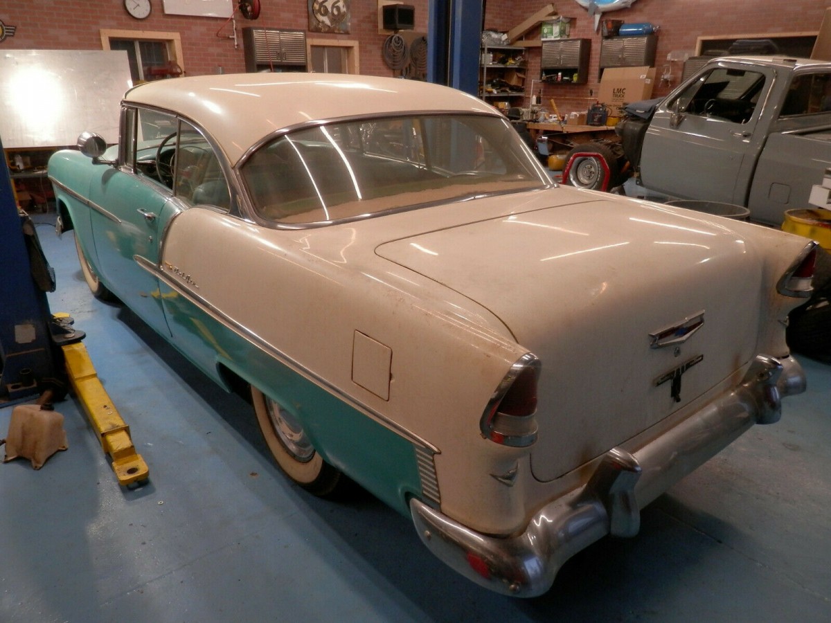 My brother has a friend in south Texas with a ’55 similar to this sitting in his shop. It is solid white, 2 dr sedan with a 265 power pack and a three speed on the column and around 30k miles on it. The original paint would clean up well with a compounding and wax. Unfortunately he just bought stuff, but never did anything with it. Fortunately it is sitting inside. He has about half a dozen el caminos and chevy pickups sitting outside deteriorating. My father tried to buy it from him shortly before he passed away in November of last year. (His first new car was a 56 Bel Air 2 dr. sedan.) After dad’s house sells later this year (hopefully) I plan to go back and try to get negotiations restarted.