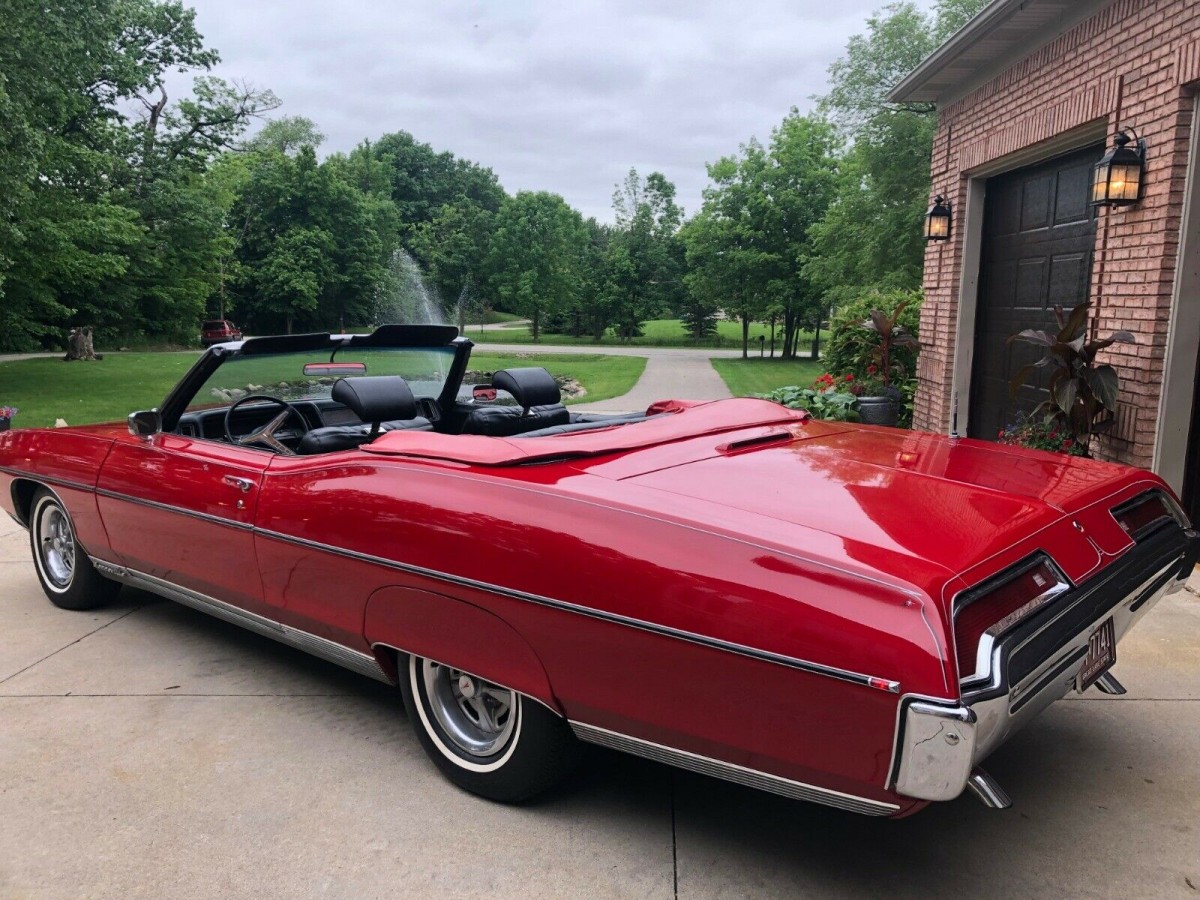 It’s a ’69 Bonneville convertible, and that’s a good thing, however, be careful. The A/C is wrong, the color is wrong, the rocker covers are wrong, the boot is wrong, it has 428 emblems and a sticker on it and an aluminum intake, but most Pontiac V8s look alike. It’s not an original survivor IMHO. Be aware of what your bidding on. If you’re a serious buyer have it checked by an expert.