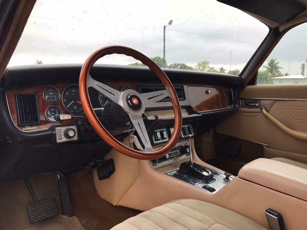 What’s for sale here is a Series II model, basically, a facelift introduced for the 1974 model year. The Series II sedan and coupe were the last cars to get direct input from Jaguar founder Sir William Lyons. U.S. cars got a smaller grille and upgraded heating and AC. In 1975, revised bumpers with rubber overriders and embedded turn signals were added.