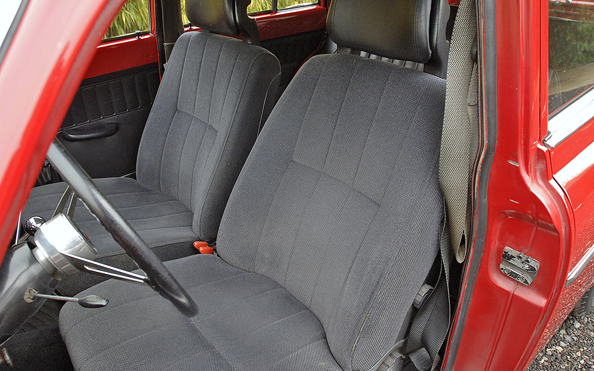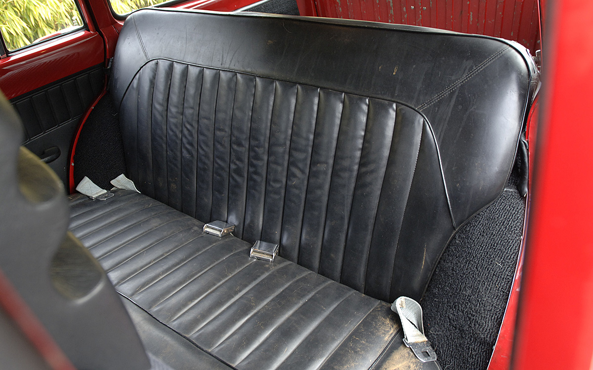 As perfect as this car looks, there is a flaw! The humanity! The lower portion of the tailgate, you know, the part that goes down while the upper part goes up in a sort of clam-shell design? Yeah, that lower portion is starting to show some rust bubbling. I’m assuming that this red color would be easier to match than on a silver car or some other metallic finish car, but white and black are probably the easiest color, or tone, to match. The underside looks rust-free and that’s probably more important than the tail gate is, rust-wise. Modifications include, “IPD sport coils and sway bars front and rear, renewed front bushings, ball joints, tie rods and idler arm, plus Bilstein shocks on all corners. The front brakes have been updated to discs with braided stainless flex lines. A 2.25″ exhaust was installed through a Dynomax muffler with side exit. The rear end was rebuilt, it’s a Dana-Spicer Type 30 axle with 4.10 gears. Rebuilt driveline with new u-joints, hanger limit straps and poly bushings.” Wow!