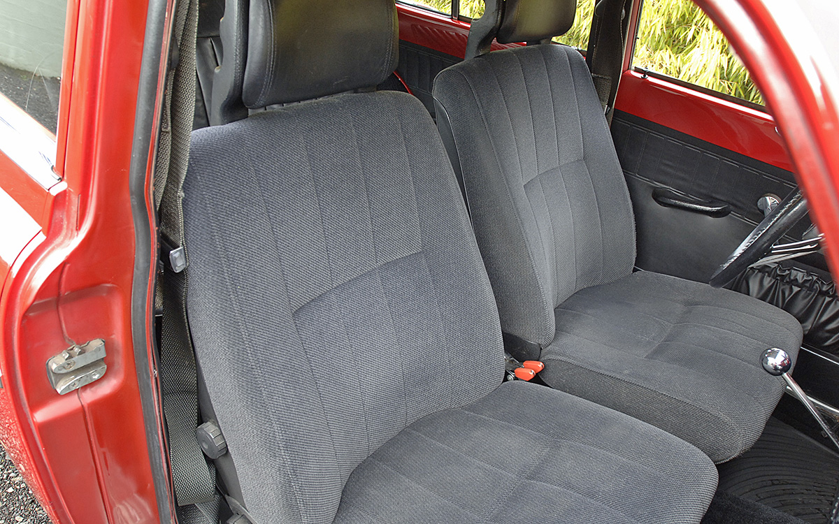 Hey, those seats aren’t from a 122S! You are correct, they’re from a late model Volvo 240 and they’re heated. I can’t imagine driving a car like this in sloppy, salty, snowy weather, but that’s what they were made for; Sweden isn’t exactly Arizona. Since I wouldn’t be driving this one every day I would prefer the original-spec seats, but that’s just me. The back seat is original, that’s nice. When it comes time to haul firewood home, or stow away your snow shoes and/or groceries, you’ll have more than enough room in the back. The seller says that “the gauges and controls operate correctly, the only deviation from stock are programmable intermittent wipers, on a Volvo switch. Tachometer is functional, heater and fan work great, and the correct indicator light for the overdrive has been installed.”