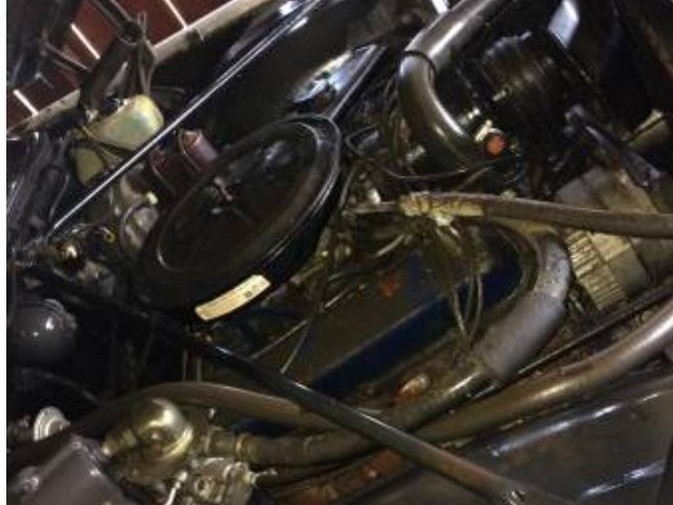 This car is a 30-year barn find that has had one repaint in the last 46 years. There is some minor rust in the back window area. Other than that, the body is in good condition. The front bumper fillers could use replacing. I’m not sure if that’s a tan vinyl top, or a very dirty white vinyl top. I tend to lean toward the later, so a good cleaning will help, while the top does appear to be in good condition.