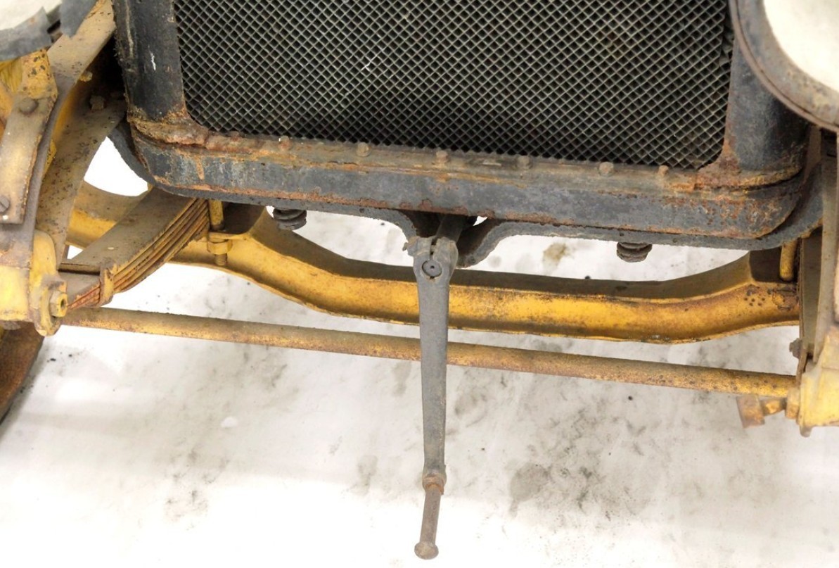 How many times have we seen Continental engines in early machinery? (I feel like Continental deserves a whole article.) This one is a 220 cu. in. four, paired with a tiny one-barrel and mated to a cranky three-speed crashbox. The starter is … you. Mechanical brakes operate on the rear wheels. Speaking of wheels, their wood spokes and rims have shrunk and are showing cracks and unsettling separations; the solid rubber “tires” need renewal as well (no date code on those, but I can tell they’re past their prime!)