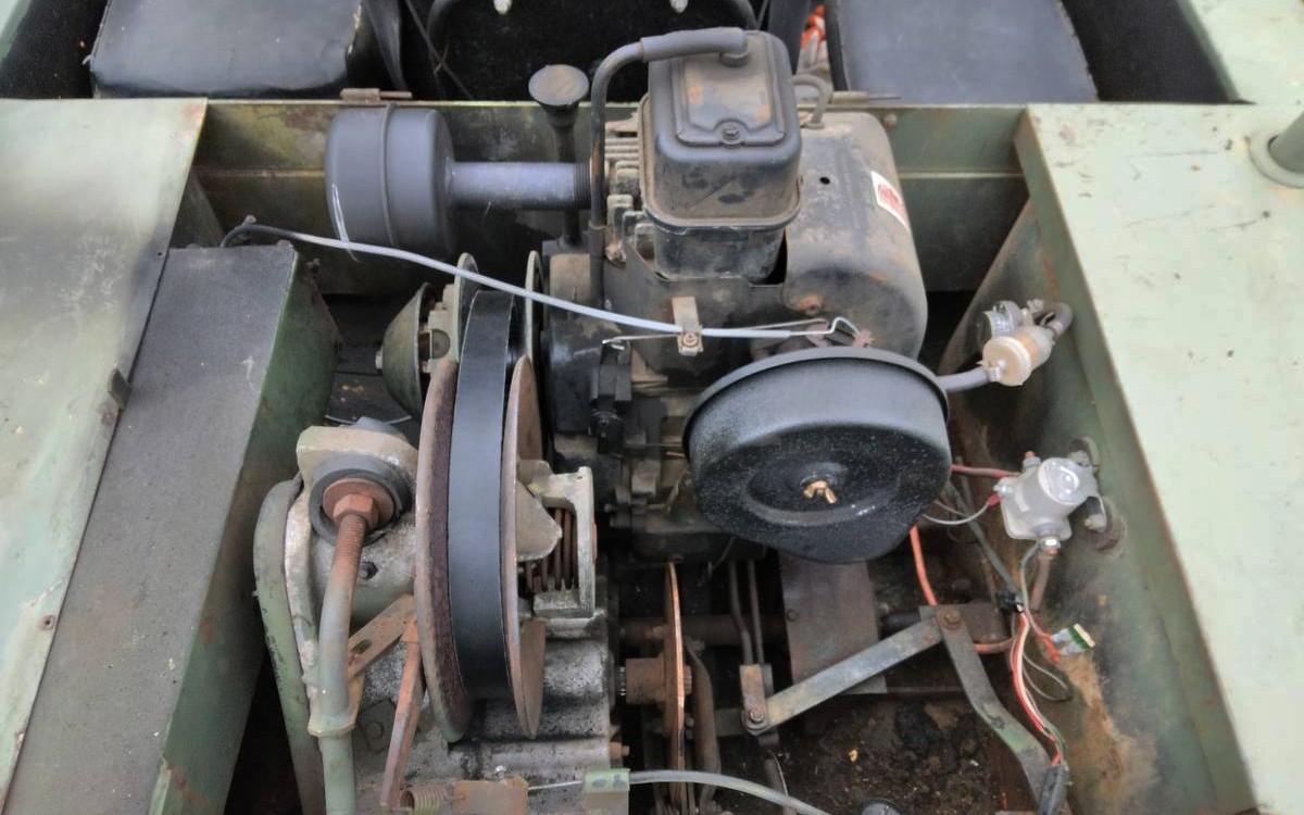 This one has the original 16-horsepower Tecumseh single-cylinder and centrifugal clutch but they say a different-size belt would make a difference in its performance. The company also offered an 18-hp two-cylinder Briggs & Stratton and a 10-hp Wisconsin single-cylinder diesel. This one has an interesting gas tank setup and here’s a photo of the battery and battery compartment. It all looks pretty good to me and I don’t have a use for this or any place to use it, but that doesn’t mean that I don’t want it! Have any of you owned an ATV like this Terra Jet?