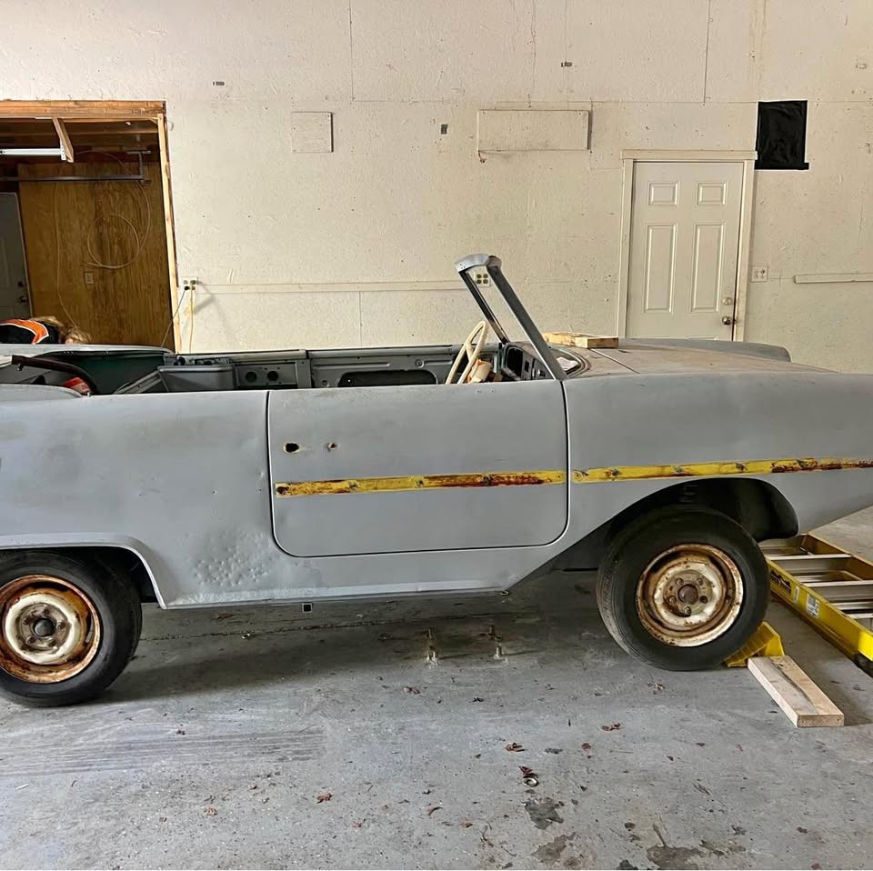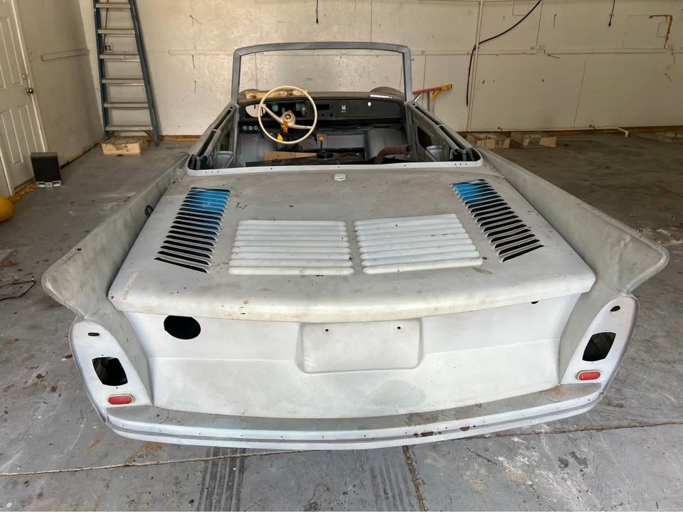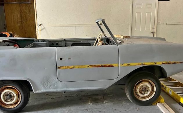 The Amphicar has always left me torn because while I am passionate about classic cars, I have an irrational fear of boats. Basically, anything smaller than the Queen Mary venturing across anything deeper than my bathtub is best avoided! However, some people wish to combine the best of both worlds, and it was against this background that industrial designer Hans Trippel set his mind racing. Best known for his work designing the doors on the iconic Mercedes-Benz 300 SL Gullwing, Trippel developed the Amphicar concept for production by the Quandt Group. Production commenced in 1960, winding down in 1965. However, Quandt had overestimated demand, and cars produced during the final year were given titles reflecting their sale year as the company found buyers for the surplus vehicles. The story behind this 1966 example is slightly vague, and the seller does themself no favors by the lack of decent photos. They confirm that the body has been sandblasted and primed, but there remains plenty for the buyer to do. There is a range of panel imperfections requiring attention, and focusing on rust elimination is crucial if the new owner intends to drive this classic down a boat ramp to undertake nautical adventures. The engine bay sports a coat of Blue paint, although some images suggest that this Model 770 left the factory wearing Fjord Green. It is unclear whether all of the trim and other obvious missing parts are included, although the listing text suggests that this Amphicar may be essentially complete.