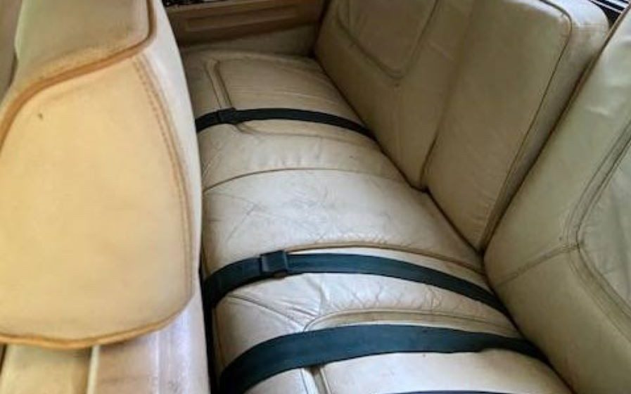 The seller states, “IT IS A VERY LARGE CAR, YOU COULD ALMOST PUT FOUR PEOPLE IN FRONT SEAT” Yup, it’s a whammer-jammer, something right out of that B-52’s song. Upholstery fabrics for ’69 Imperials consisted of cloth and leather combination or an optional all leather arrangement. The seats in this LeBaron appear to be the standard leather/cloth offering and they’re not in the best of shape. Besides showing dirt and yellowing, two things that white excels at doing, there are visible split seams. and just general dreck spread about. Now it’s possible that a deep cleaning could work some magic here and the interior may be in better nick than the two images would leave one to believe. A physical observation will be required to know for certain. The dash and instrument panel are not well represented pictorially, so no statement can be made on their account.