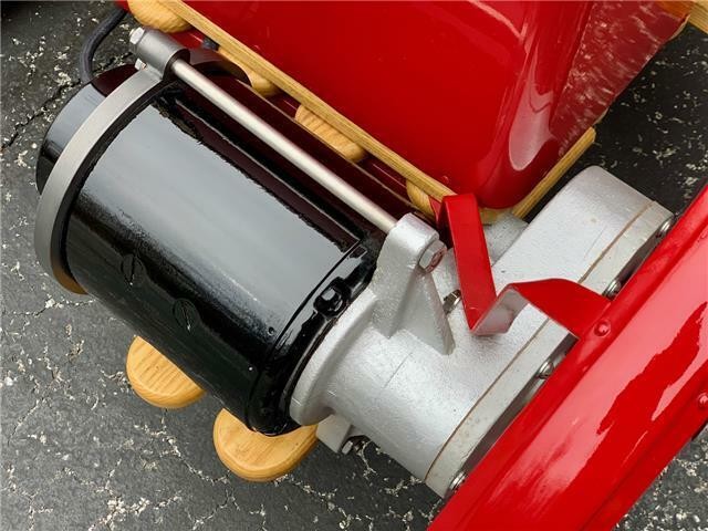 The pictures above and below show the means of propulsion. One would assume that the battery box would hold two of the most powerful automotive batteries of the time. Perhaps we have a Red Bug fan in our readership who can tell us if off-the-shelf batteries were used or if special batteries were made for this box to take into account frequent charging cycles. That direct current electricity was sent to the same type of electric motor used to start Dodges during that period. It would also be interesting to know the service life of one of these former starters in this application.