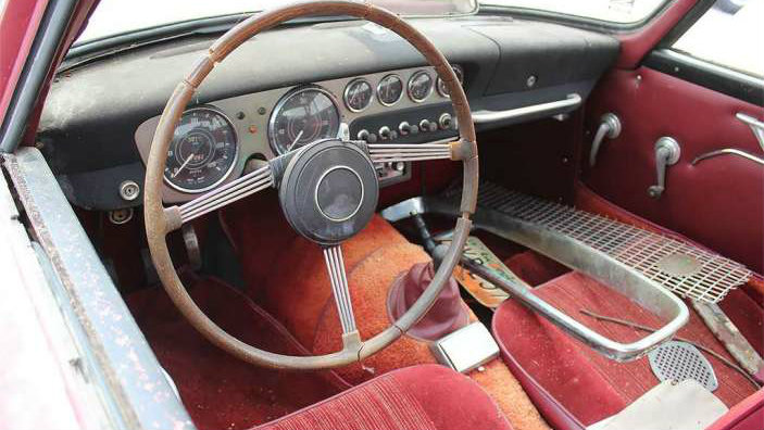 The grille for this car is in the interior, but the mesh is not the original. Luckily, it can be obtained, as it’s the same as a contemporary Maserati 3500. The seller tells us that the car has never had an accident, which is a good thing since panels have to be fabricated at this point. I can tell you from experience that there’s a lot of lead in the original body, as parts were hand made to begin with. We’re also told it has little rust, and I’m pleases to see intact glass and chrome, although obviously it will need restoring.